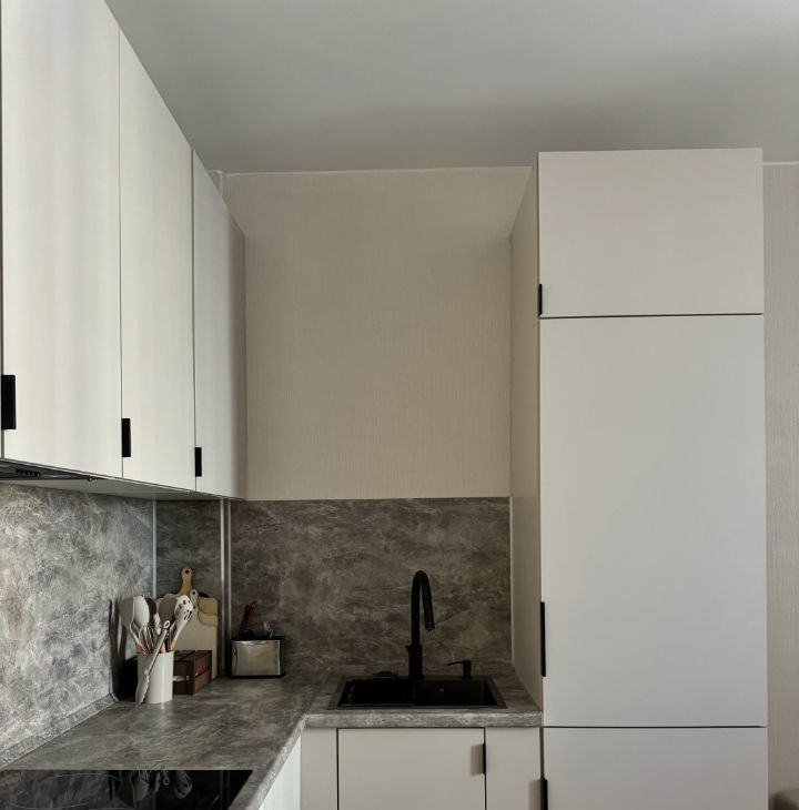 Установлена новая бытовая техника (встроенный холодильник, стиральная машина, плита, духовка, чайник, телевизор)
