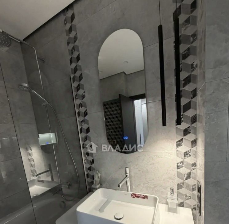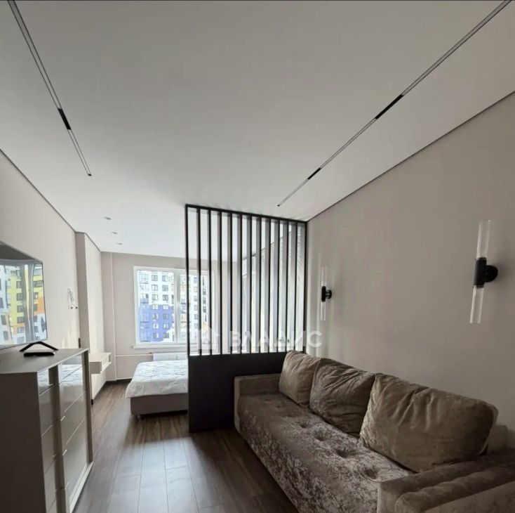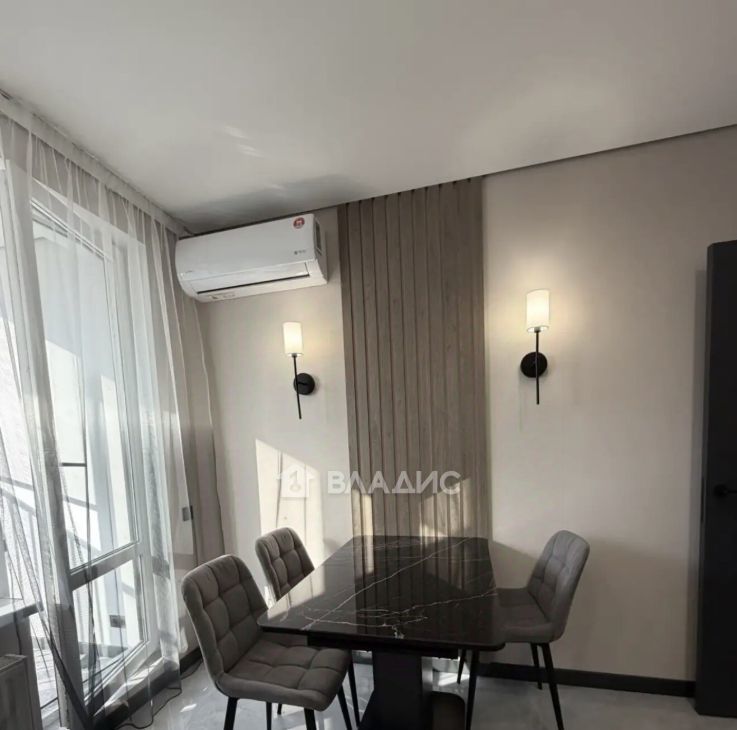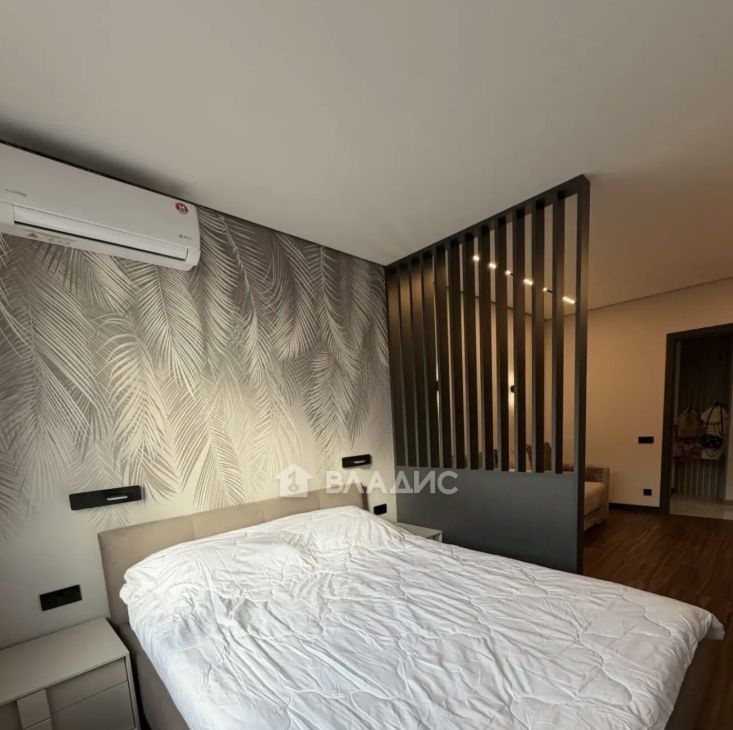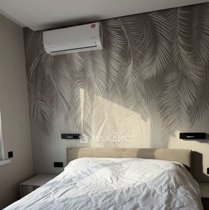 Спальня оборудована удобной кроватью и вместительными шкафами. В гостиной установлен кондиционер и телевизор. Совмещенный санузел оформлен в современном стиле с качественной сантехникой.