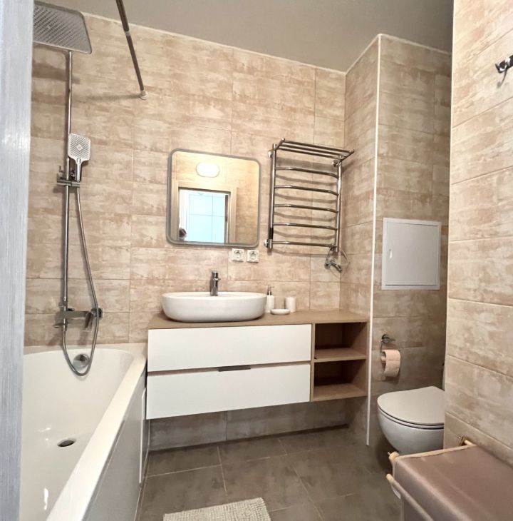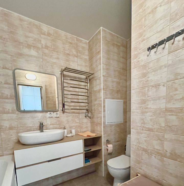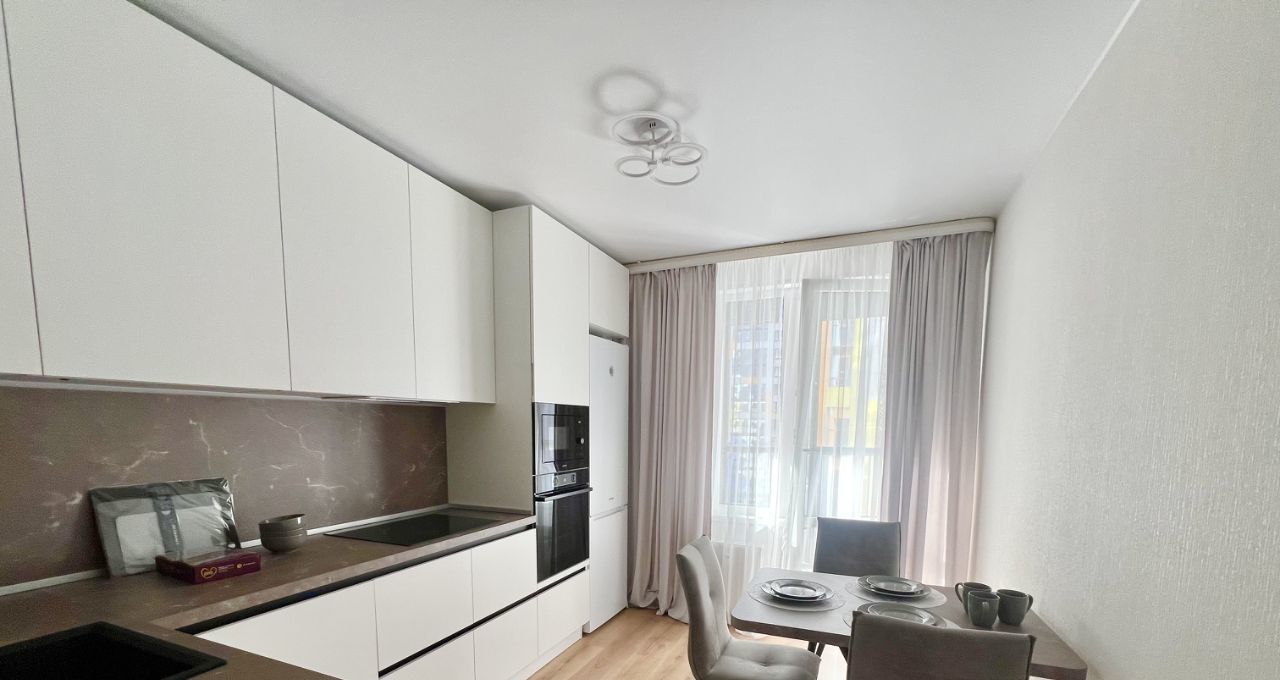 ЖК комфорт-класса! Квартира после евроремонта, сдается впервые, полностью готова к проживанию: установлен кондиционер, кухня оснащена современной техникой Gorenie (есть измельчитель пищевых отходов), стиральная машина с сушкой, мебель от компании Стильные кухни, а также два телевизора (смарт), интернет.