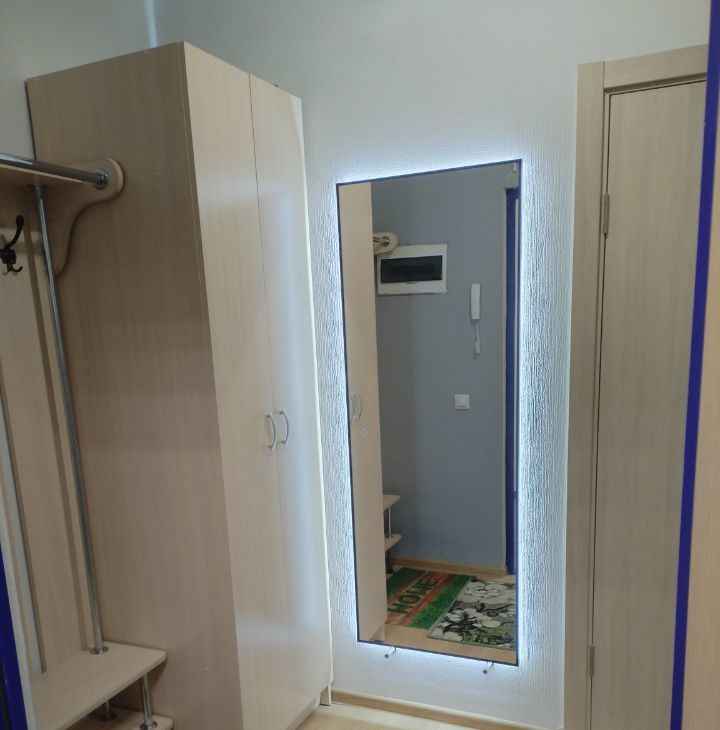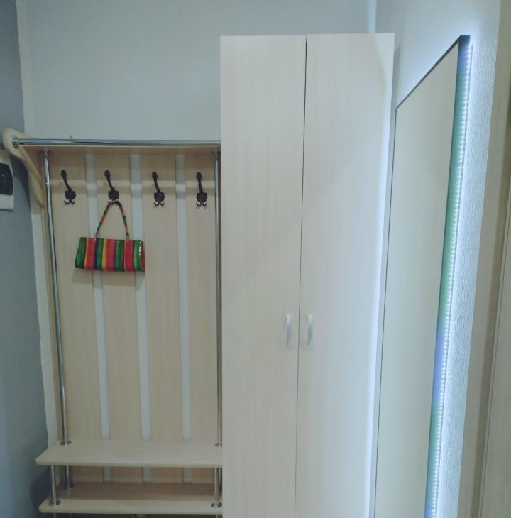 Прихожая шкаф для одежды, вешалка с сиденьем на 4 крючка, большое зеркало с регулируемой подсветкой.