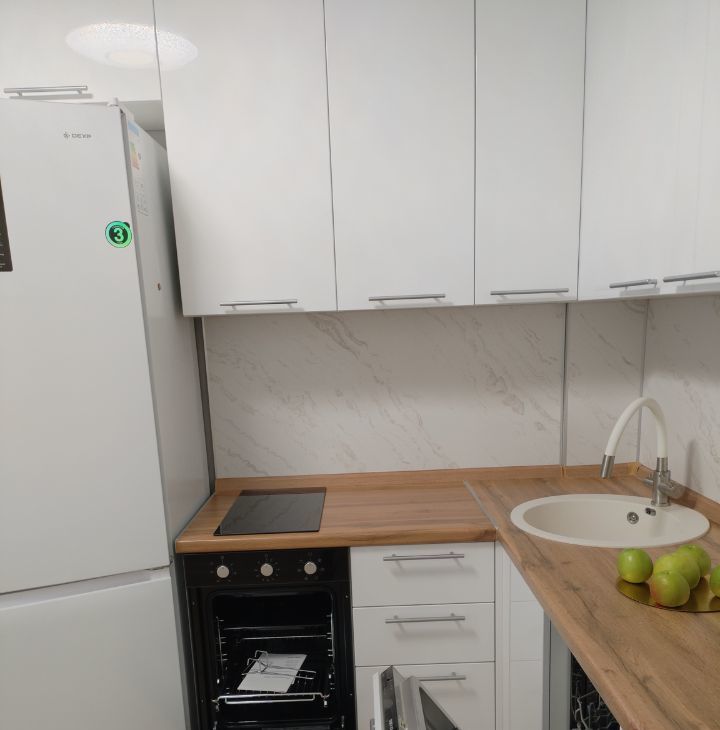 Кухня мебель:кухонный уголок, стол раскладывающийся, Кресло велюровое (вращающееся), диванчик. Техника : холодильник,с функцией NO FROST,варочная панель, духовой шкаф,посудомоечная машина, чайник,микроволновая печь.фильтр для очистки воды,