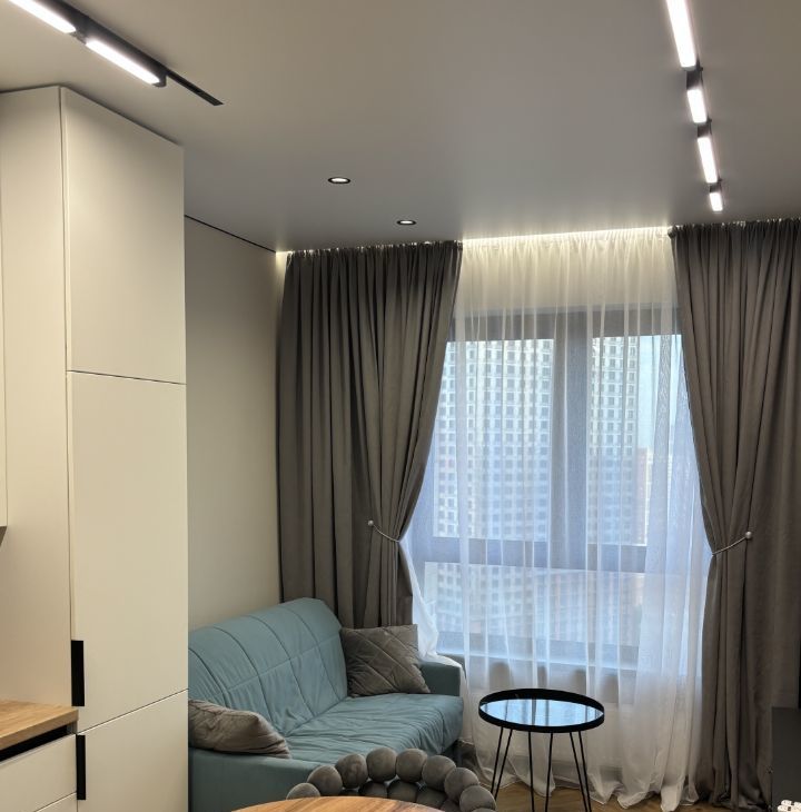 Сдается стильная однокомнатная квартира с дизайнерским ремонтом в новом монолитном доме 2023 года постройки. Общая площадь квартиры составляет 38 кв. м, из которых 20 кв. м — жилая площадь и 15 кв. м — просторная кухня. Квартира находится на 19 этаже 44-этажного дома, из окон открывается вид на улицу. До станции метро Селигерская всего 10 минут пешком.