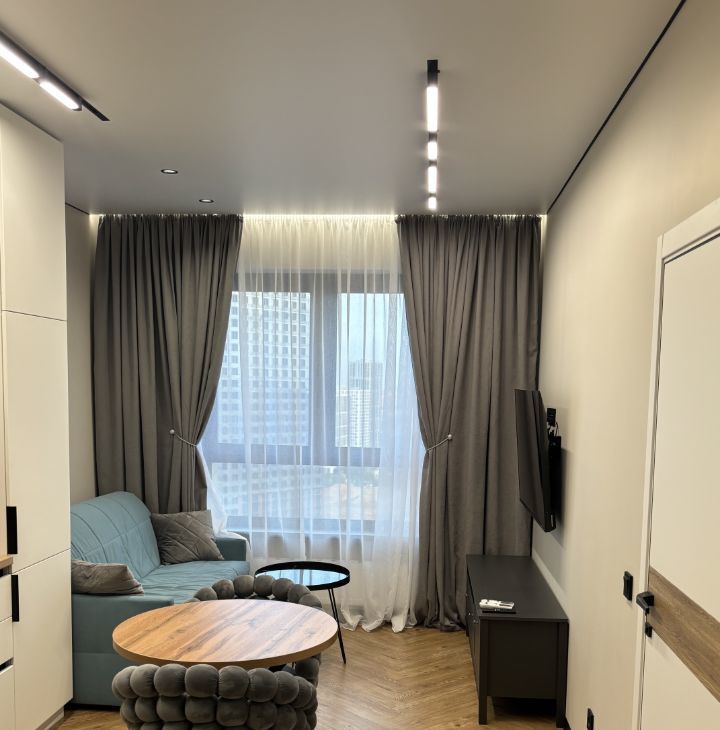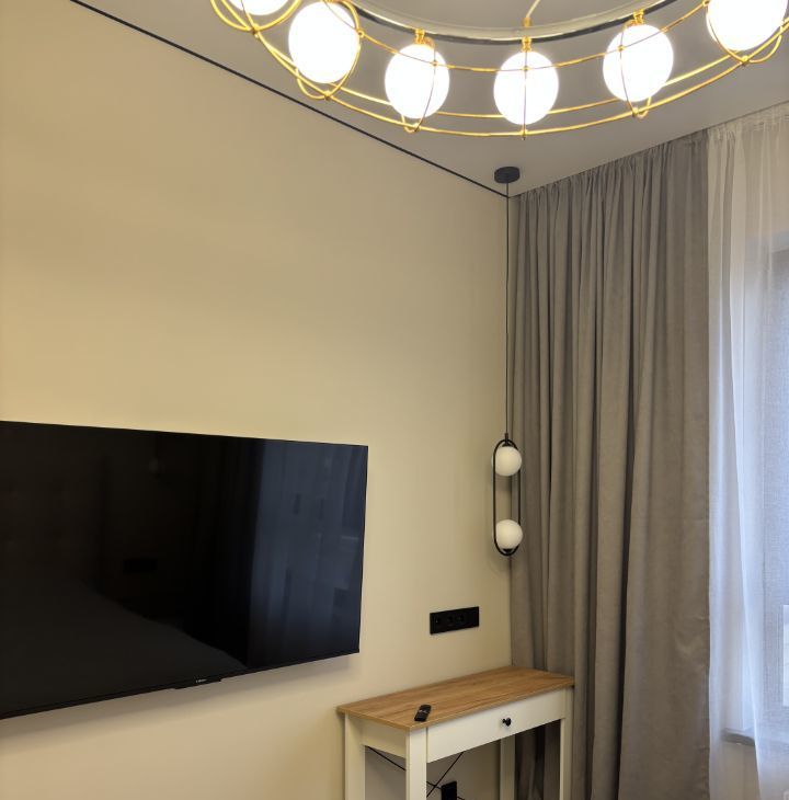 В квартире есть все необходимое для комфортного проживания: современная мебель в комнате, кондиционер, холодильник, посудомоечная машина, телевизор и стиральная машина. Просторная ванная комната оборудована душевой кабиной. Дизайнерский ремонт и продуманная планировка создают уютную атмосферу.
