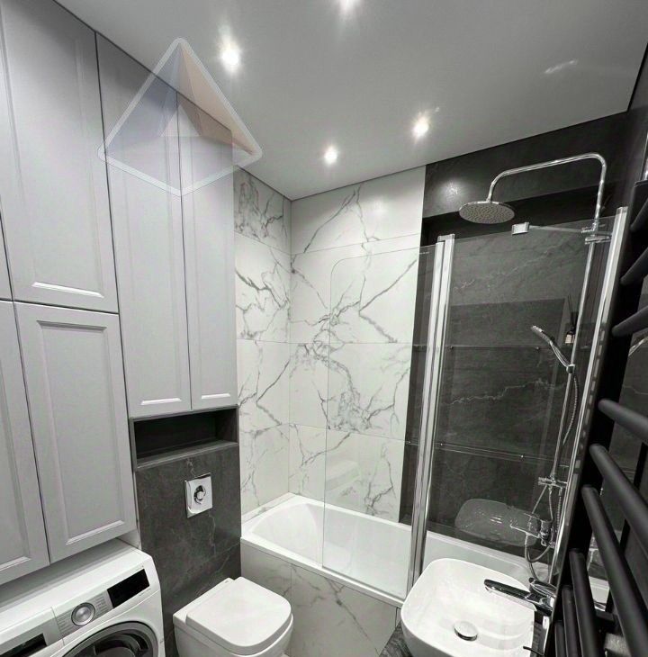 Кухня полностью укомплектована техникой Bosch/Neff: холодильник, духовой шкаф, микроволновая печь, индукционная варочная панель, посудомоечная машина; в спальне — двуспальная кровать с качественным матрасом Askona и встроенные шкафы, установлены шторы 100% blackout для комфорта. В квартире есть кондиционер, телевизор, интернет — всё готово к заселению, ремонт и техника изначально делались для собственного проживания, рассматриваются арендаторы без животных, страховой депозит можно разбить на несколько платежей.