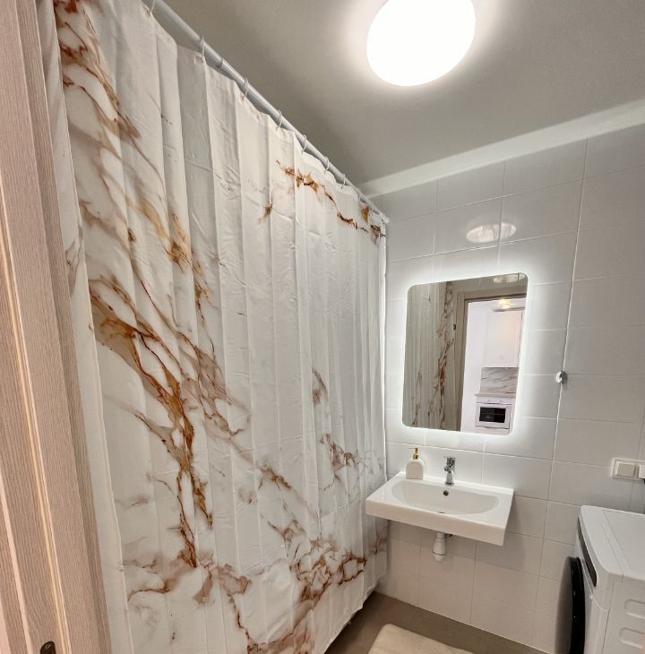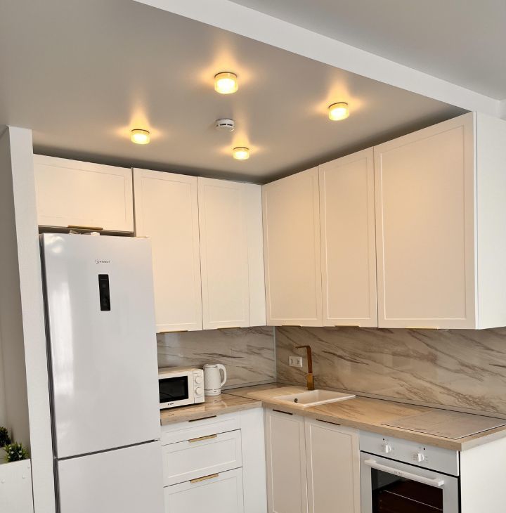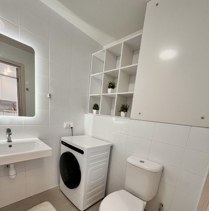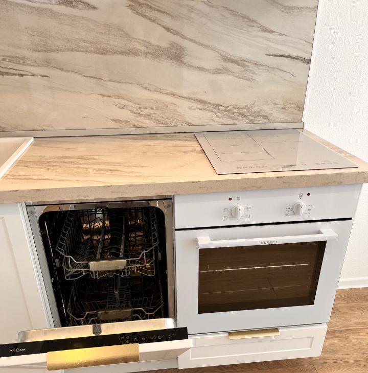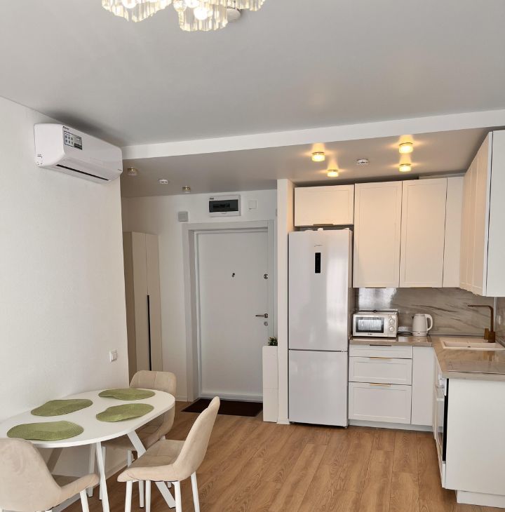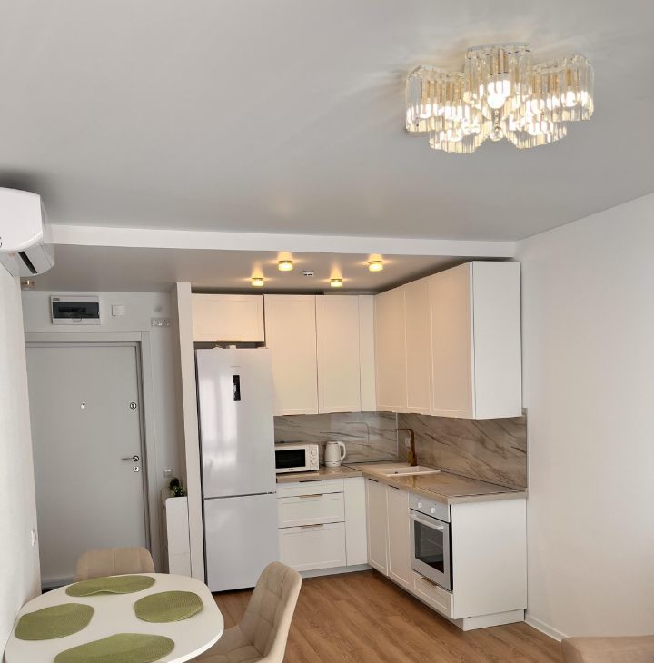 В квартире есть все необходимое для комфортного проживания. Просторная кухня оборудована современной мебелью и техникой: кондиционер, холодильник, посудомоечная машина, варочная панель, духовой шкаф, электрический чайник, вытяжка и телевизор.