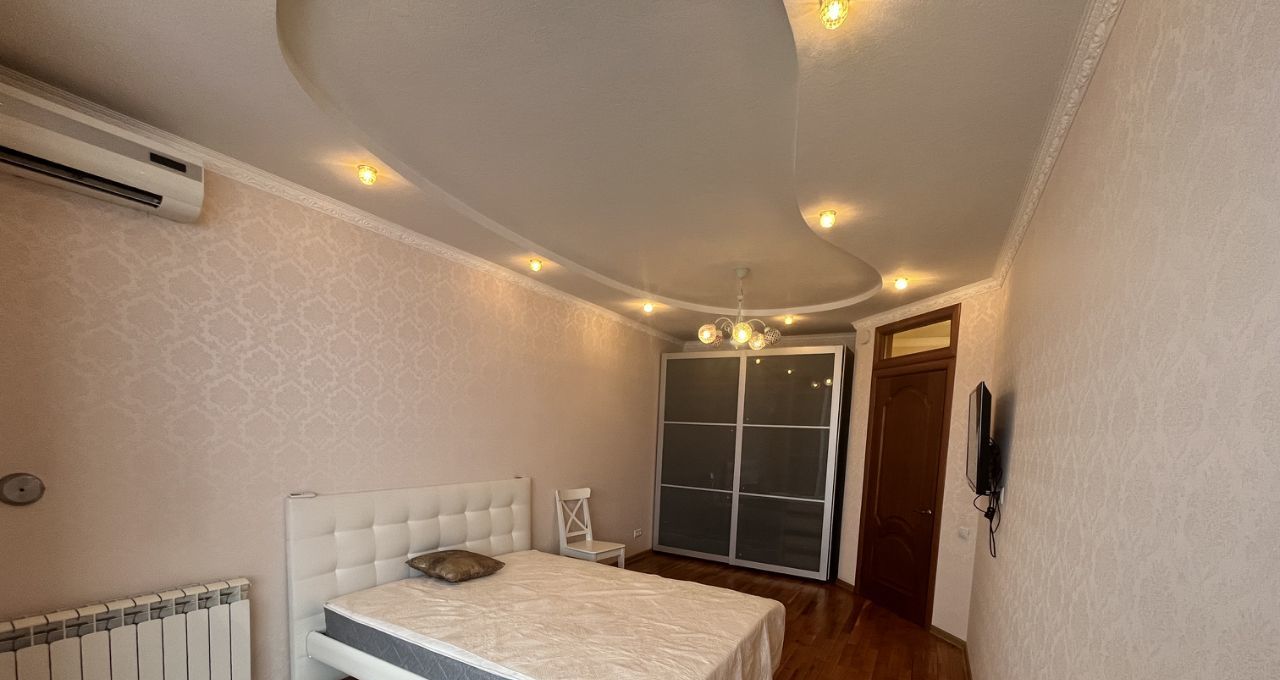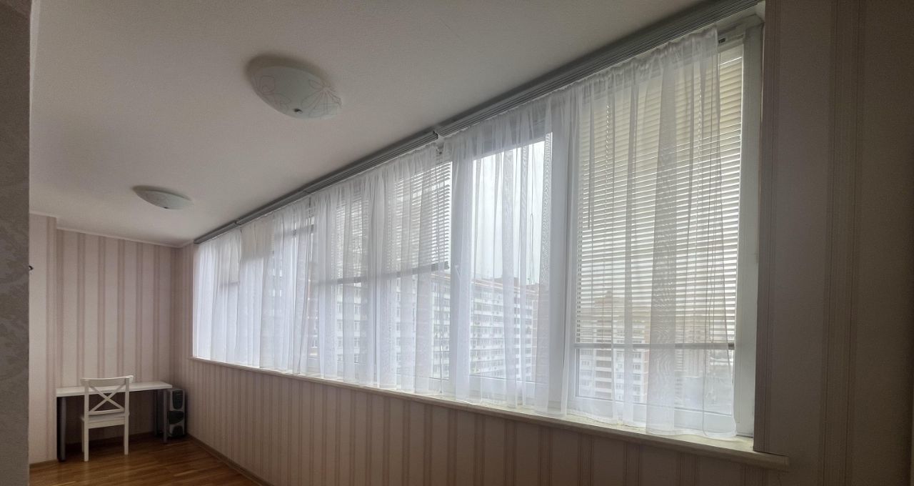 Просторная комната с выходом на огромную лоджию и кухню, пол паркет, кондиционер, окна выходят в тихий двор.