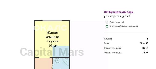 1-к кв. Москва Ижорская ул., 6к1 (20.0 м²)