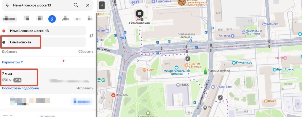 Метро Семеновское 7 мин. пешком (см. фото);