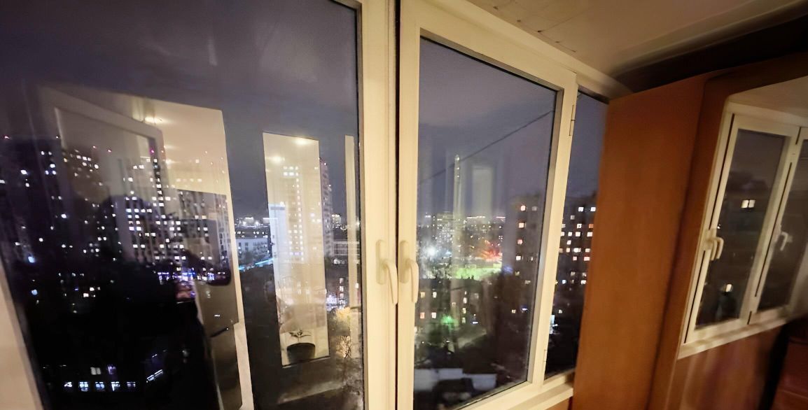 Балкон остеклен, может использоваться как дополнительное помещение для хранения или сушки белья.