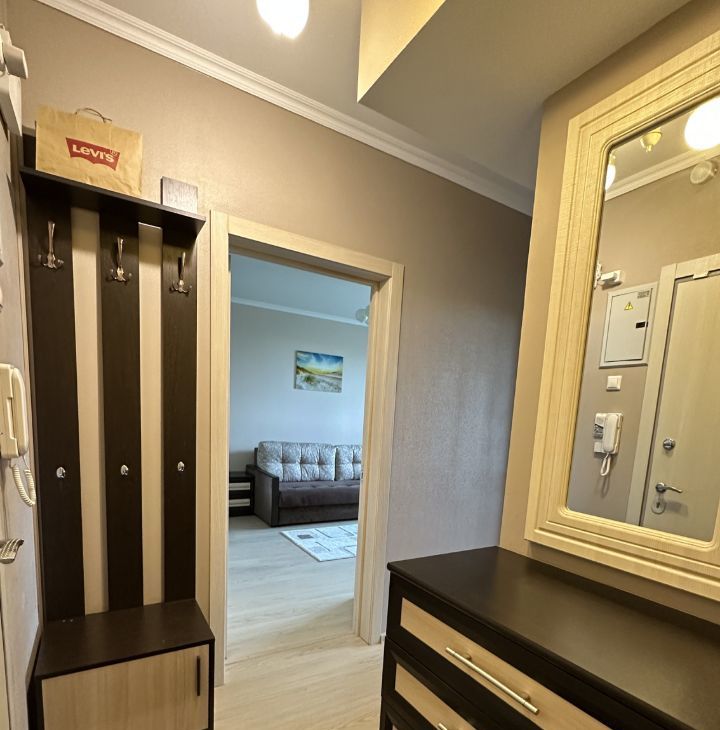 В квартире имеется кондиционер, плазма, раздвижной диван, новая мебель, микроволновка, интернет, стиральная машина и все остальное для комфортного проживания. Великолепный вид из окна на зеленую зону.
