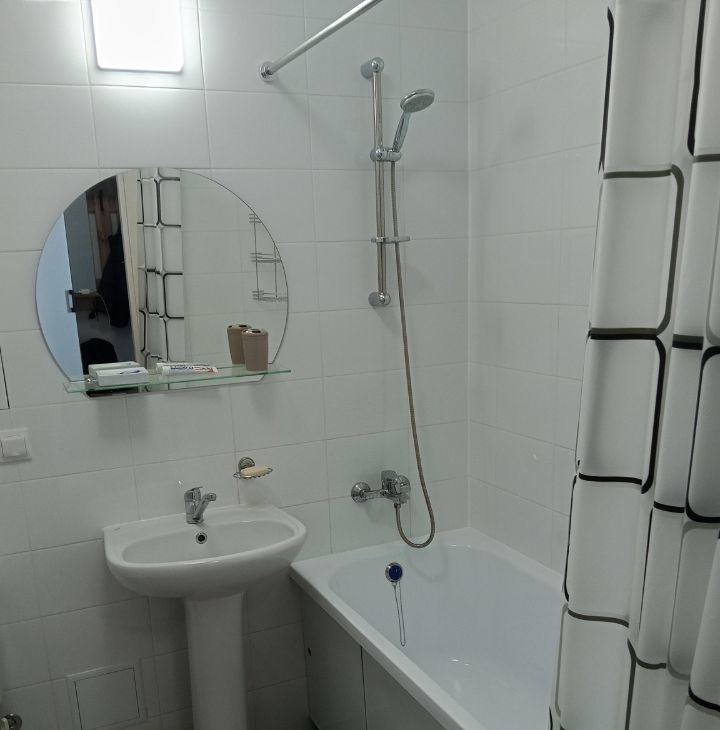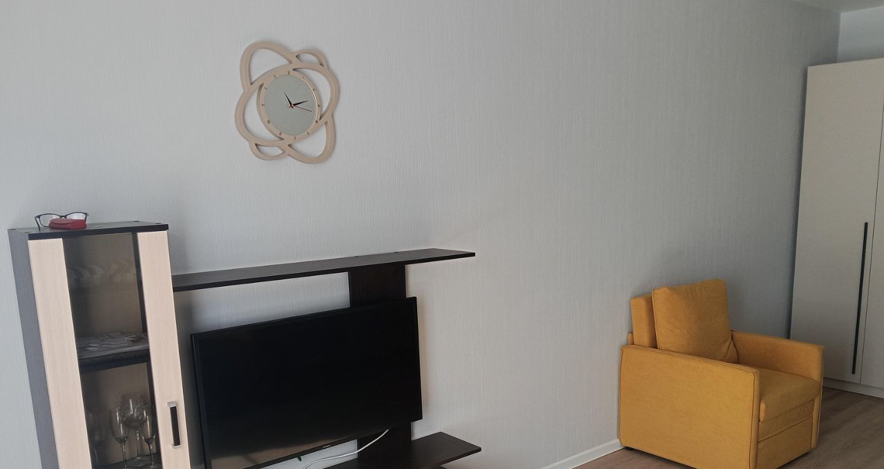 В квартире есть всё необходимое для комфортного проживания. Просторная кухня площадью 10 кв. м оснащена мебелью и техникой: холодильник, телевизор, стиральная машина. В комнате также имеется мебель. Совмещённый санузел оборудован ванной. Окна выходят во двор, поэтому в квартире тихо и спокойно.