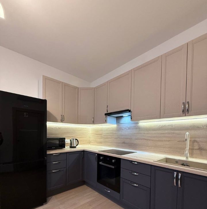 В квартире выполнен качественный евроремонт. Изолированная спальня, просторная кухня-гостиная, совмещённый санузел. Шумоизоляция на высшем уровне. Есть вся необходимая мебель и техника. Подземный паркинг через домовой чат, а также наземный под шлагбаумом.