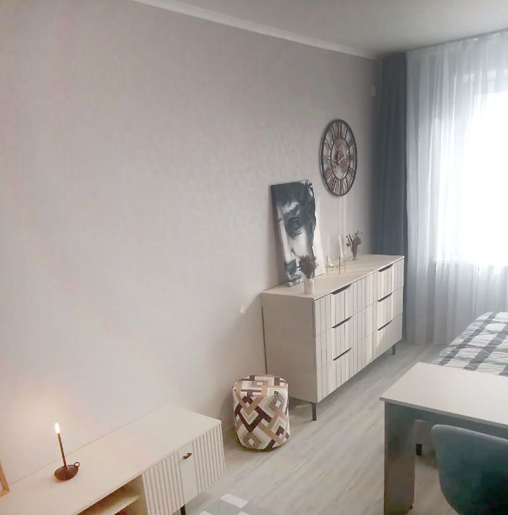 Впервые, после дизайнерского ремонта сдается на длительный срок уютная, светлая однокомнатная квартира , полностью укомплектована всей необходимой мебелью и бытовой техникой.В комнате : двуспальная кровать с подъемным механизмом , вместительный шкаф для одежды , комод для белья , раскладной диван, полноценное рабочее место - письменный стол со стеллажом . Сан узел раздельный, (аксессуары для ванной и туалета из коллекции Kakha,) в ванной установлена стиральная машина. Рассмотрим семейную пару , возможно с ребенком от 7 лет , или оного человека . Строго без животных
