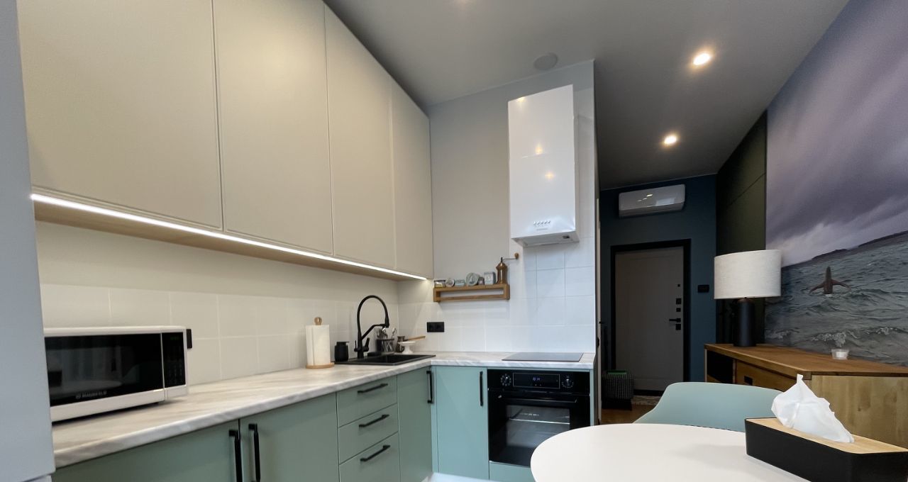 Уютная 1комнатная квартира в тихом центре Москвы — идеальный вариант для одного человека или пары. Современная планировка включает в себя: выделенную зону приготовления пищи, зону гостинной и зону спальни.