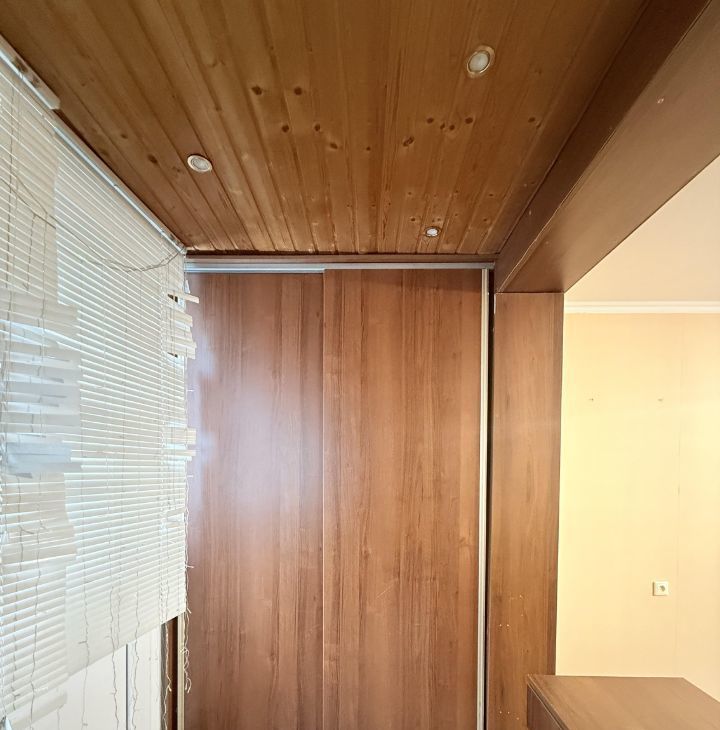 Объединение комнаты с балконом значительно увеличило полезную жилую площадь, улучшило естественное освещение и позволило создать функциональную зону и увеличить пространство комнаты. Здесь же располагается мягкий удобный диван, идеально подходящий для отдыха после рабочего дня. Предусмотрены вместительные встроеные шкафы, мест для хранения достаточно, что позволит удобно разместить весь гардероб.