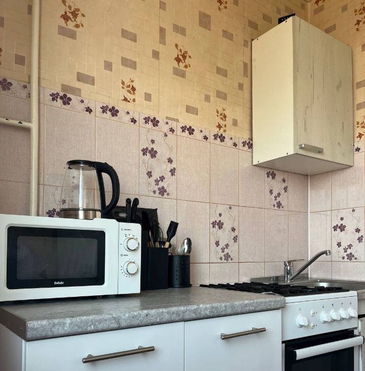 В квартире сделан косметический ремонт. В комнате и на кухне есть вся необходимая мебель для комфортного проживания. На кухне установлен холодильник, а в гостиной — телевизор. Также в квартире есть стиральная машина. Санузел раздельный, в ванной комнате установлена ванна. Подключен интернет, поэтому вы всегда будете на связи.