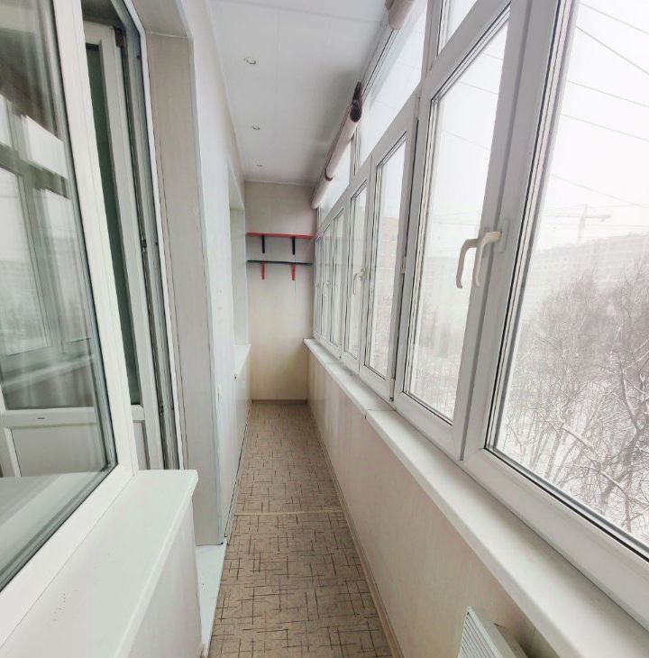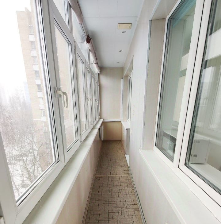 Большая лоджия, на всю ширину квартиры, объединяющая комнату и кухню. Лоджия утеплена, может использоваться как рабочий кабинет в не слишком холодное время.