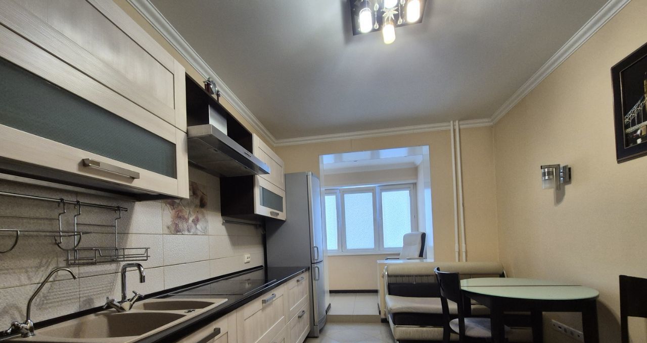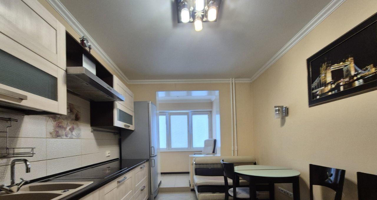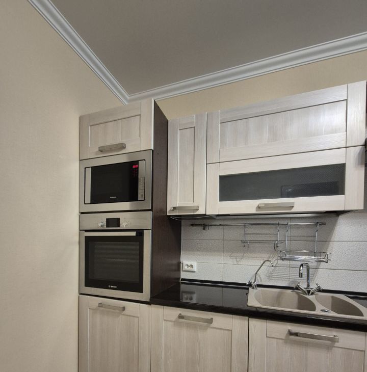 Сдается квартира с хорошим ремонтом. На кухне установлен встроенный кухонных гарнитур, есть вся необходимая техника для комфортного проживания (холодильник, стеклокерамическая плита, духовой шкаф, посудомоечная машина, микроволновая печь), кухонный стол, стулья, а также имеется большой телевизор. Балкон утеплён и сделан как продолжение кухни, что позволяет в этой зоне сделать рабочее пространство. Комната не перегружена мебелью, есть двуспальная кровать, шкаф, журнальный стол, установлен кондиционер. Санузел совмещённый, установлена угловая ванная, стиральная машина автомат. В прихожей установлен большой шкаф купе. Полы кухня, прихожая и санузел везде плитка с подогревом, в комнате ламинат. Окна стеклопакеты. Металлическая дверь. Домофон. В подъезде дежурит консьерж. Оперативный показ.