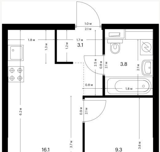 1-к кв. Москва Кавказский бул., 51к1 (31.2 м²)