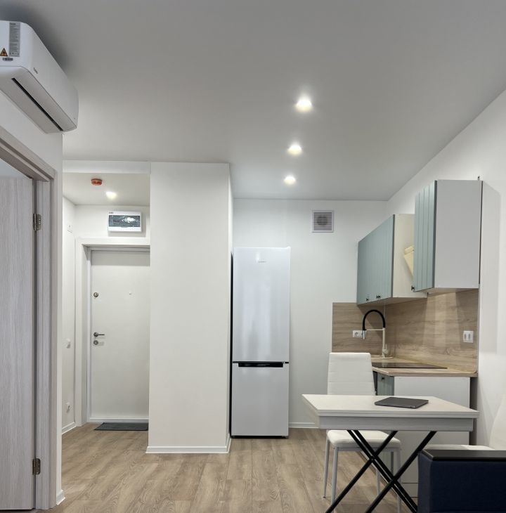 Сдается впервые, вся новая мебель и техника. Укомплектованная кухня. Стол-трансформер на колесиках, можно использовать и для рабочей действительности. Кровать 2х1.6 м. Шкаф вместительный. Кондиционер. Стиральная машина.