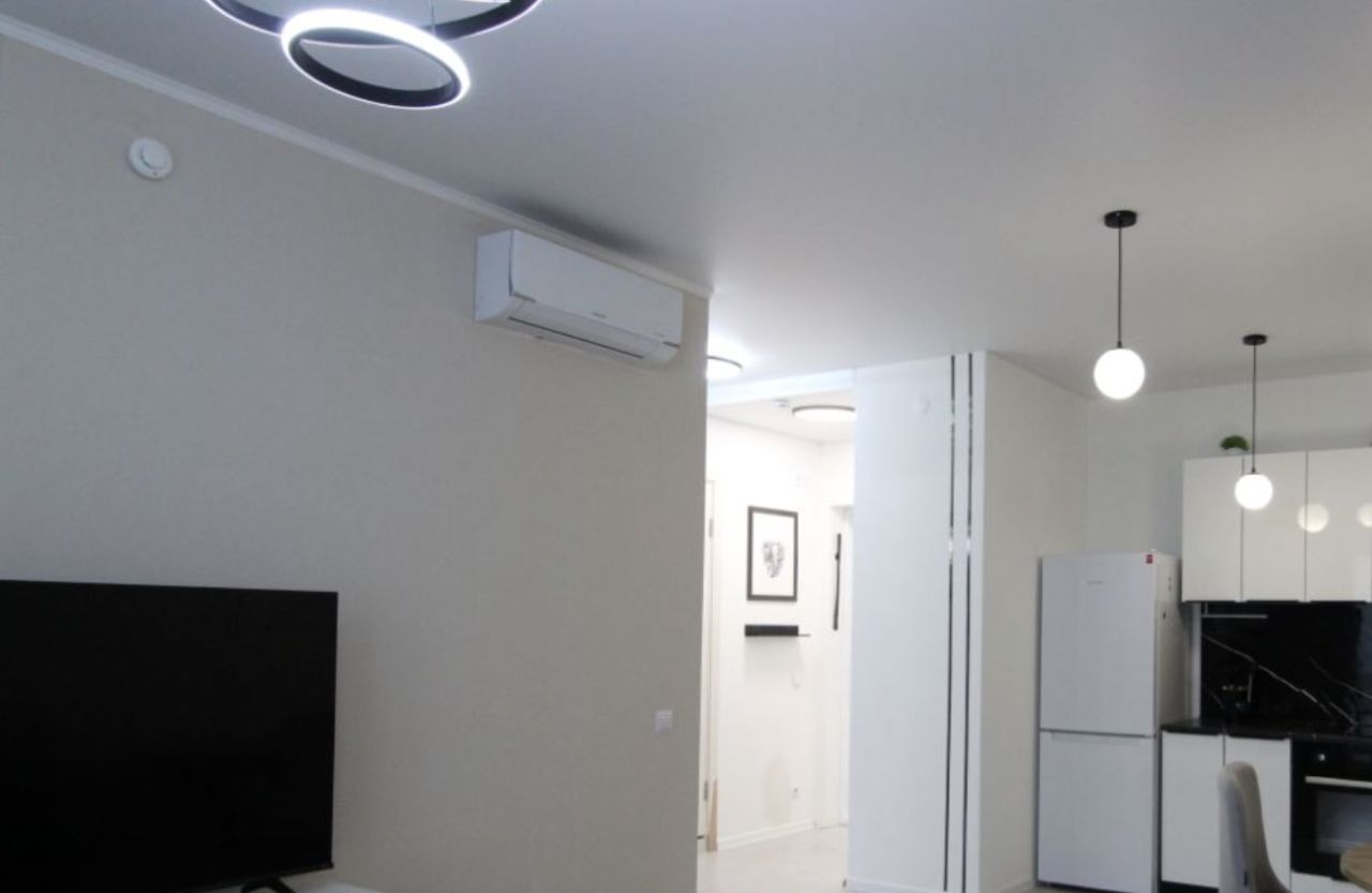 В квартире есть всё необходимое для комфортного проживания. Светлый и современный интерьер с дизайнерским ремонтом. Новая мебель присутствует как в комнате, так и на кухне, поэтому можно сразу заселяться. Имеется все необходимое для комфортной жизни: кондиционер, холодильник, телевизор, стиральная машина. Совмещённый санузел.
