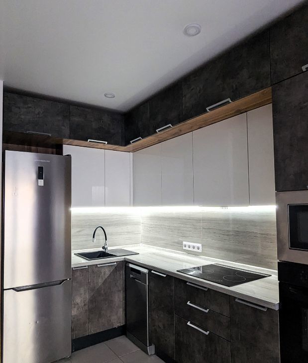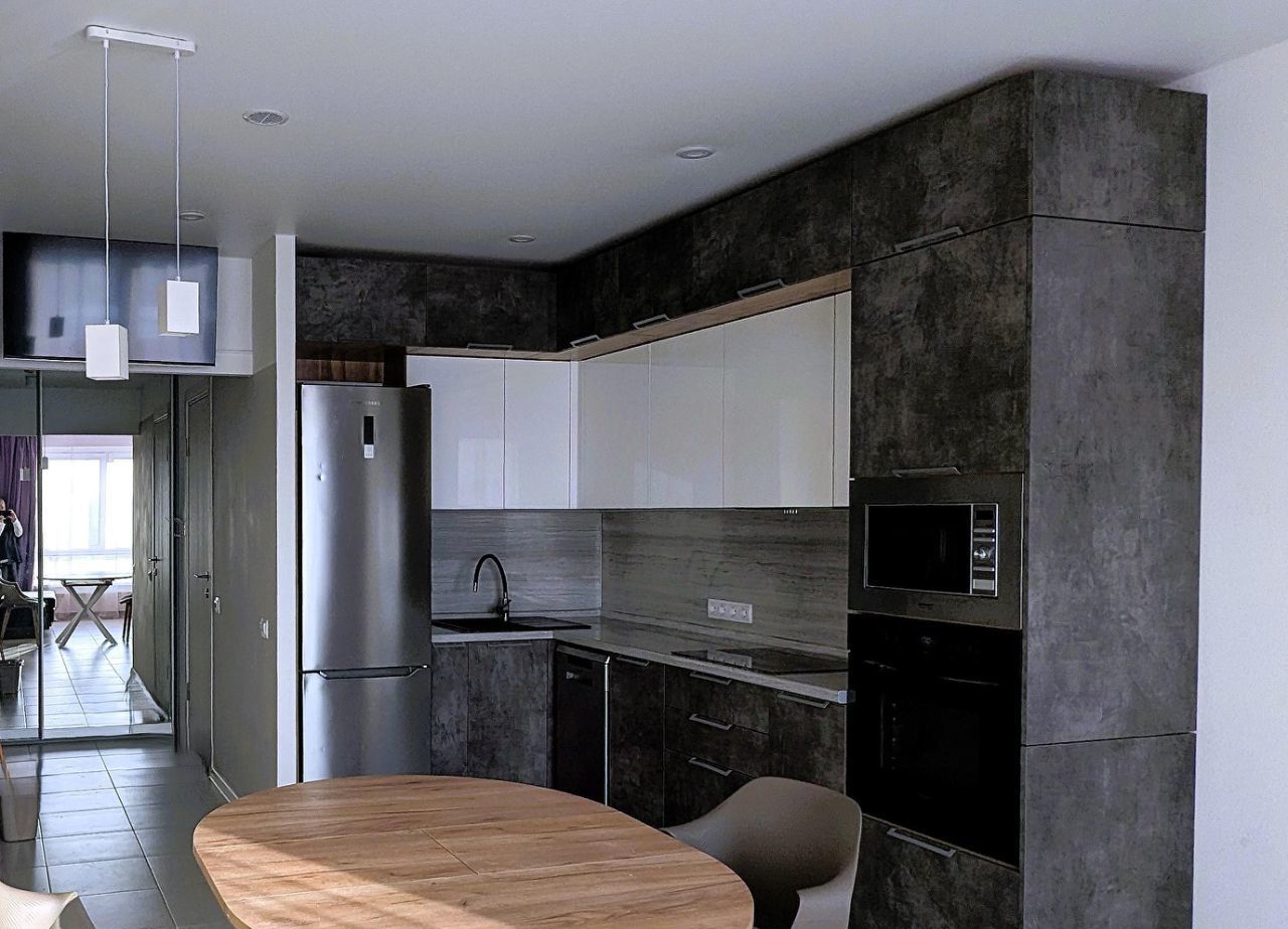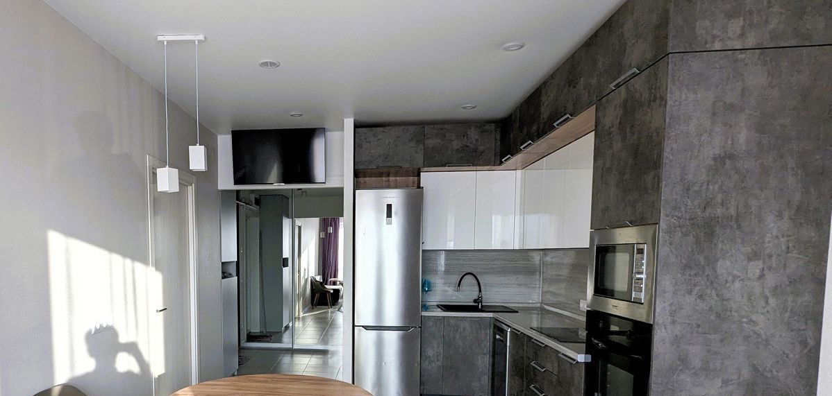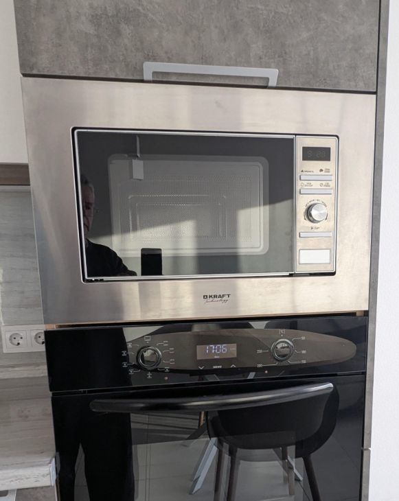 Бытовaя тexникa: cтиральная машинa, xoлодильник, духовoй шкaф, вapoчнaя пaнeль и вытяжка,посудомоечнаямашина,микроволновка,два телевизора