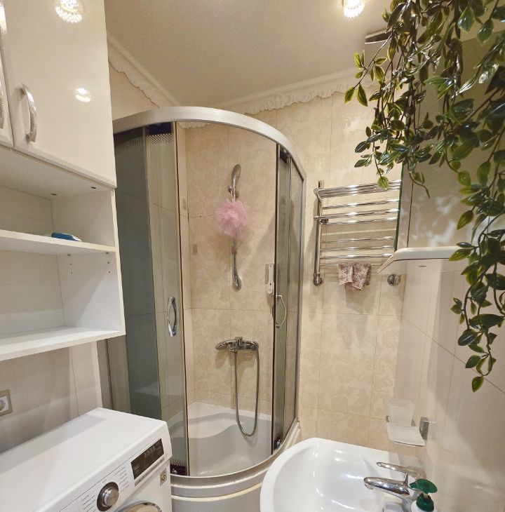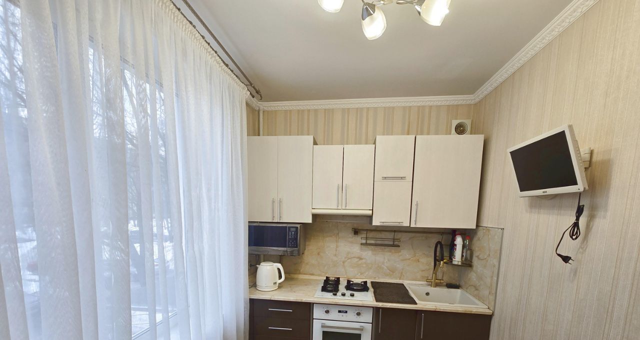 Аренда 1 комнатной квартиры на 2 этаже 12 этажного дома, по адресу г. Москва, ул. Кировоградская д. 16 к 1. Квартира со всей необходимой мебелью, техникой. Коридор: места хранения; Кухня: стол, стулья, кухонный гарнитур, холодильник, чайник, микроволновка, газовая плита, духовка, вытяжка, телевизор; Санузел: душевая кабина, стиральная машина; Комната: двухспальна кровать, телевизор, места хранения, сушка для белья, кондиционер. Есть место для установки дивана или кровати. Квартира теплая.