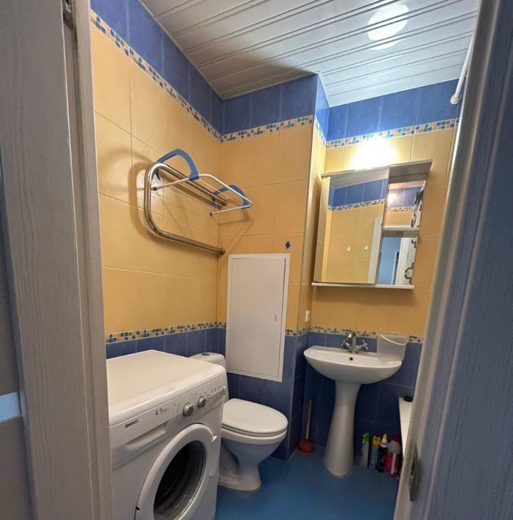 В комнате и на кухне есть вся необходимая мебель, что позволяет сразу заселиться и комфортно жить. Квартира оборудована всей необходимой техникой: холодильником, телевизором и стиральной машиной. Санузел совмещённый, с ванной. Из окна открывается вид на Кировогралские Пруды.
