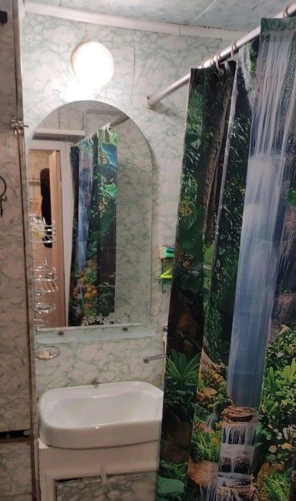 Мебель - одна большая кровать, софа, подростковая кровать, диван на кухне, кухонный гарнитур, шкаф большой угловой, стол письменный, полки, антресоли. Лоджия большая (6м приблизительно)застекленная, в общий метраж не входит