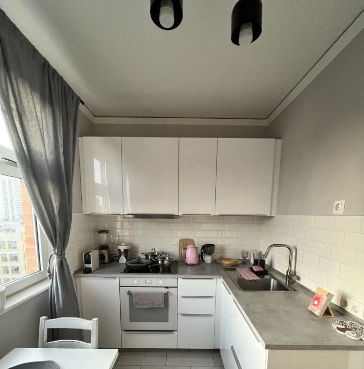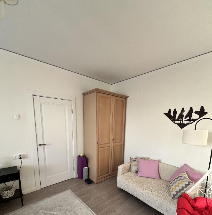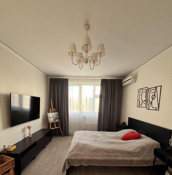 Общая площадь квартиры составляет 38.8 кв. м, жилая площадь — 19 кв. м, кухня 7.5 кв. м. Квартира находится на 10 этаже 17-этажного дома, а высота потолков составляет 2.6 метра. Из окон открывается вид на улицу, солнечная сторона, при этом есть блэк аут шторы.