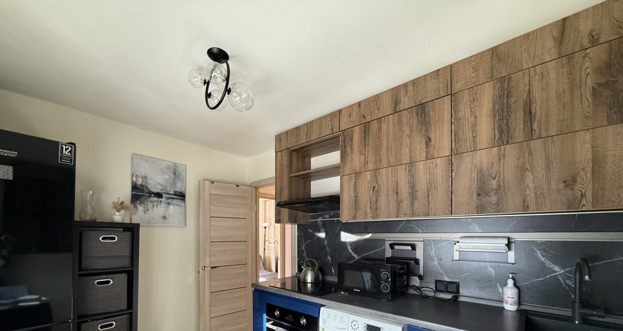 Квартира полностью меблирована и готова к въезду. Есть все: встроенная кухня с техникой, в комнате 2 раскладывающихся дивана, шкафы, посудомоечная и стиральная машины, балкон застеклен.