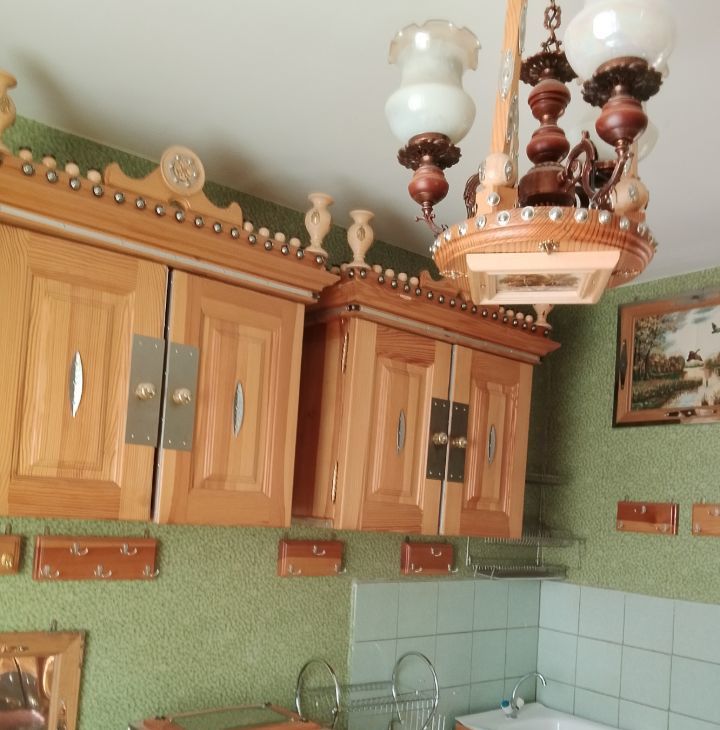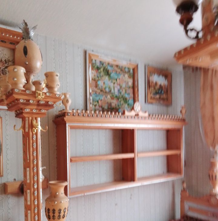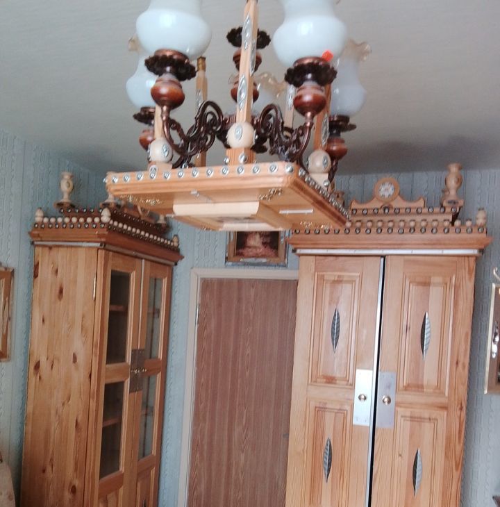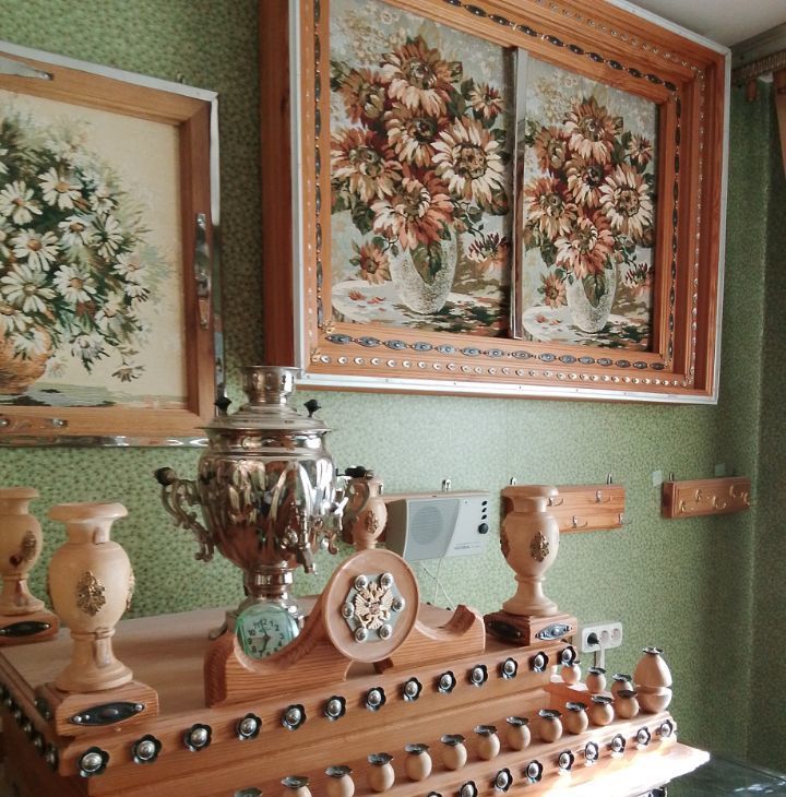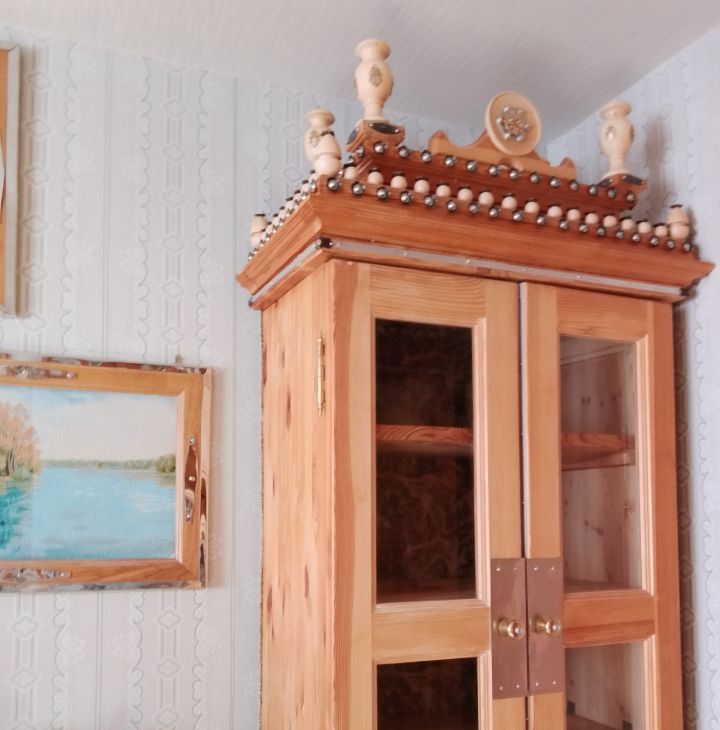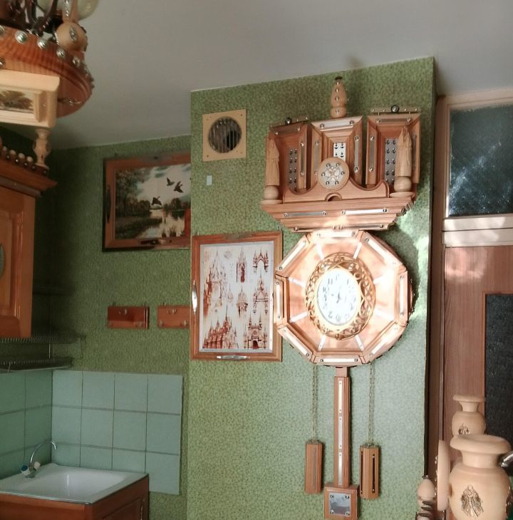 Вся мебель в квартире выполнена из массива дерева ручной работы по авторским эскизам и не имеет аналогов
