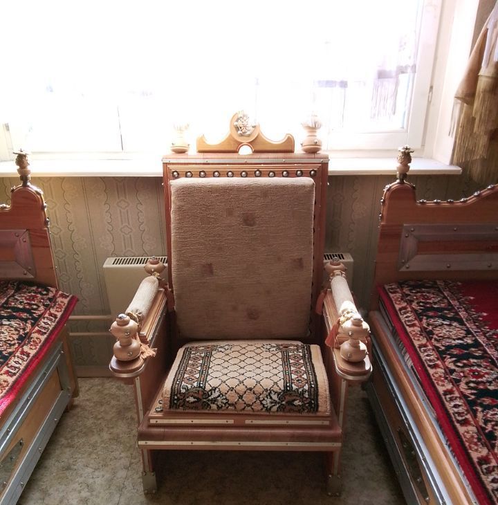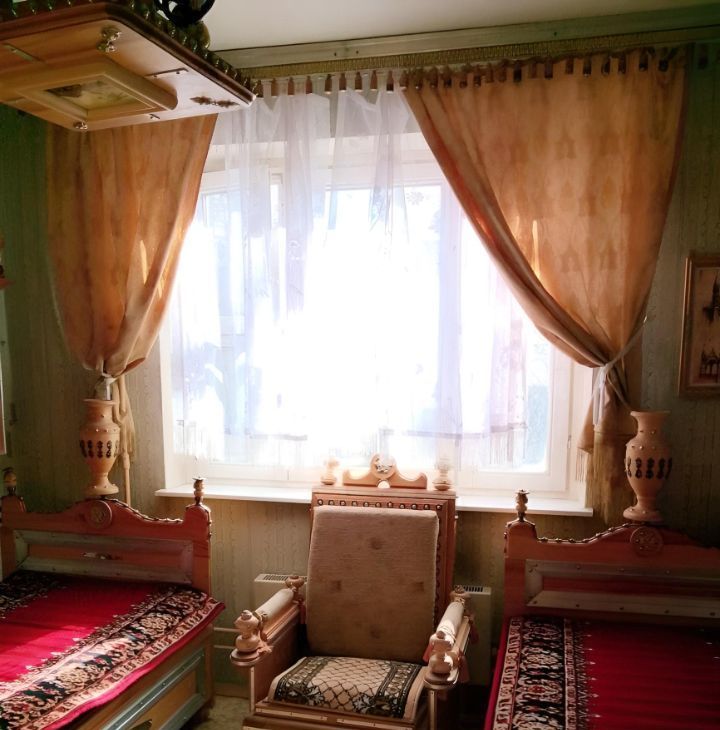- меблированная гостиная (две большие кровати, кресло, шкаф, элементы декора в виде гобеленов)
