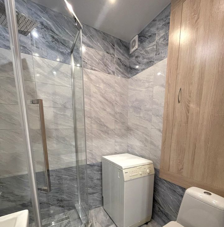 Кухня укомплектована бытовой техникой: посудомоечная машина, варочная панель с вытяжкой, холодильник, духовой шкаф. Совмещённый с/у с душем, есть стиральная машина. Парковка у дома свободная, места есть. В доме грузовой и пассажирский лифты, есть бдительный консьерж.