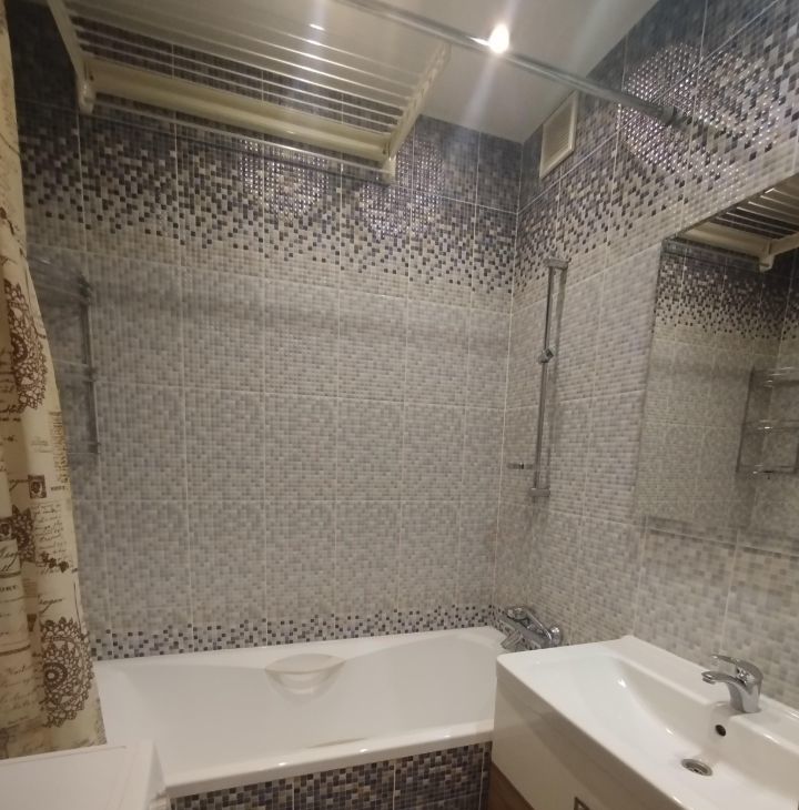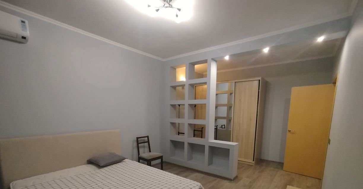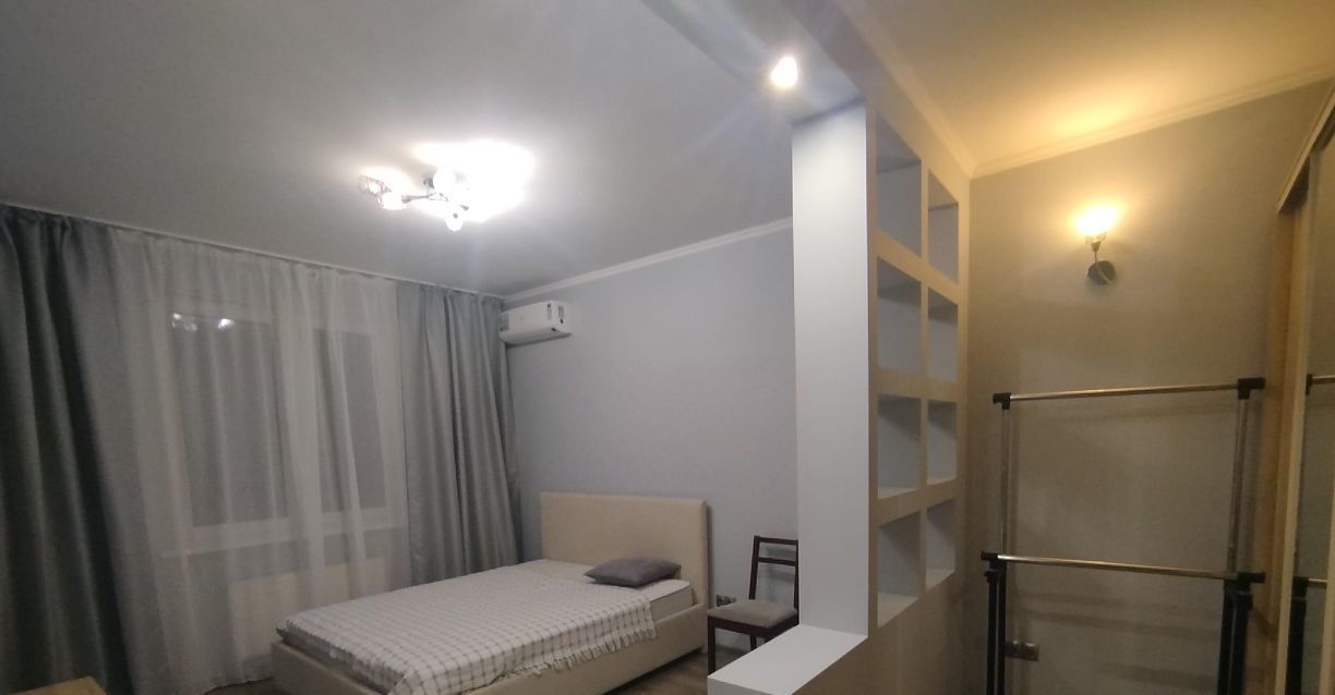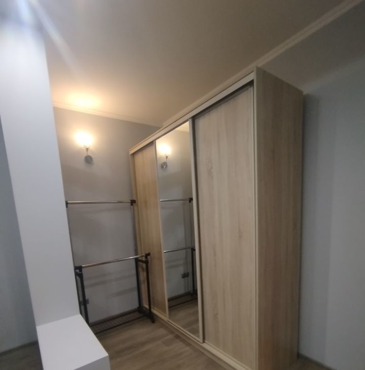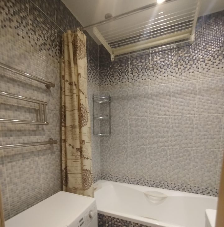 Светлая, уютная квартира. Балкон застеклен. Окна стеклопакеты. СУР- в кафеле до потолка и полы с подогревом. Укомплектованная всей необходимой мебелью и бытовой техникой. Комната поделена на две зоны спальня и гардеробная. Металлическая дверь, домофон, интернет. Длительный срок аренды.