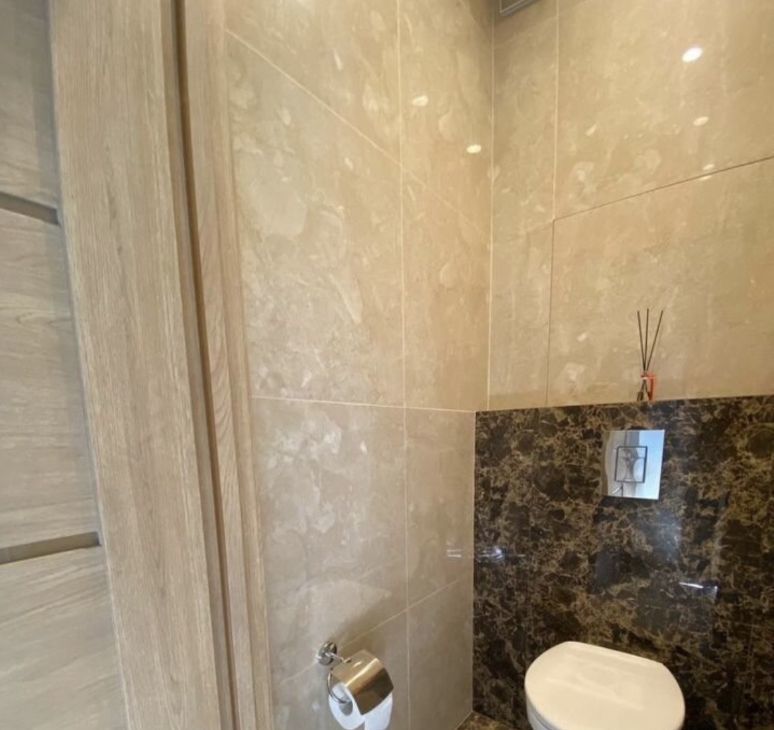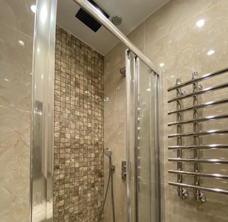 Сан узел: высококачественная немецкая сантехника. В ванной установлена столешница из натурального травертина, зеркало с подсветкой, душевая кабина имеет 2 режима - тропический дождь и обычный душ.