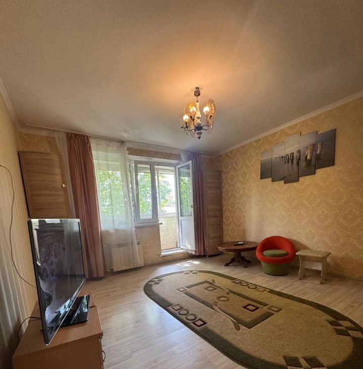 Квартира с евроремонтом, полностью меблирована и готова к проживанию. В комнате и на кухне есть вся необходимая мебель. Для вашего удобства установлены холодильник, телевизор и стиральная машина. Ванная комната оборудована ванной, а окна выходят во двор, что обеспечивает тишину и спокойствие.