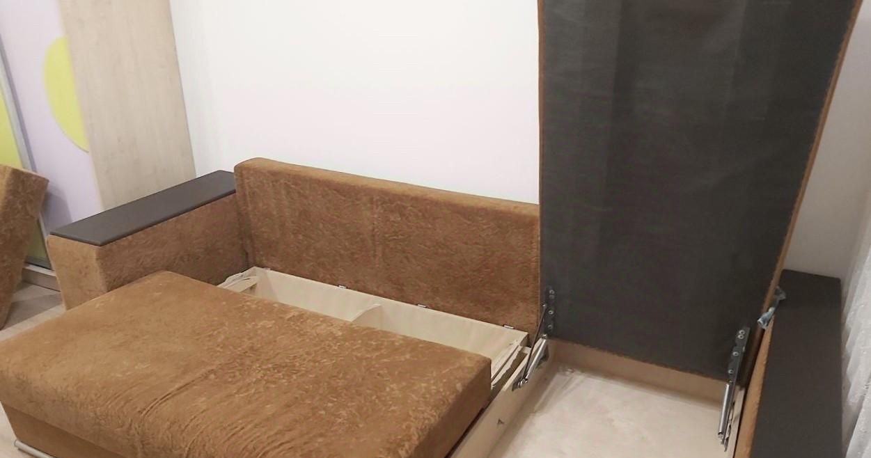 Планировка: гостиная- кухня- столовая-спальня, совмещенный санузел с душем.
