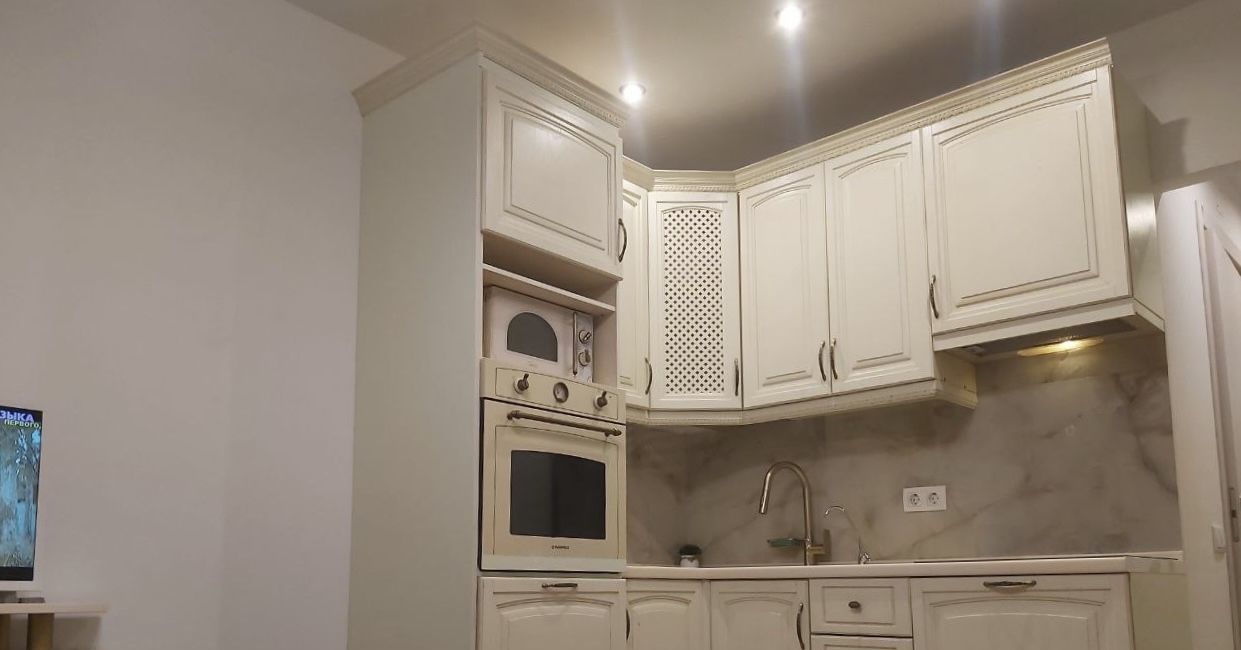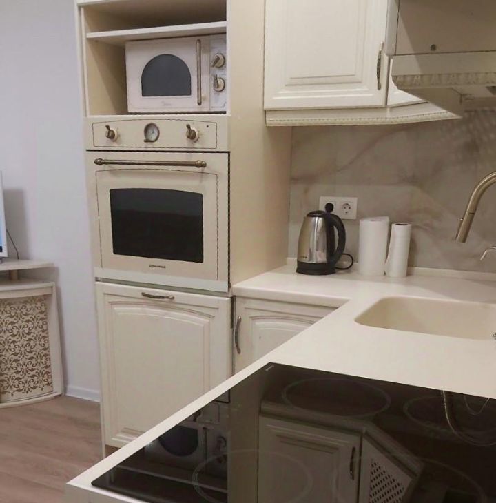 По технике: телевизор, варочная панель, духовой шкаф, вытяжка, посудомойка, холодильник, стиральная машинка, микроволновка.