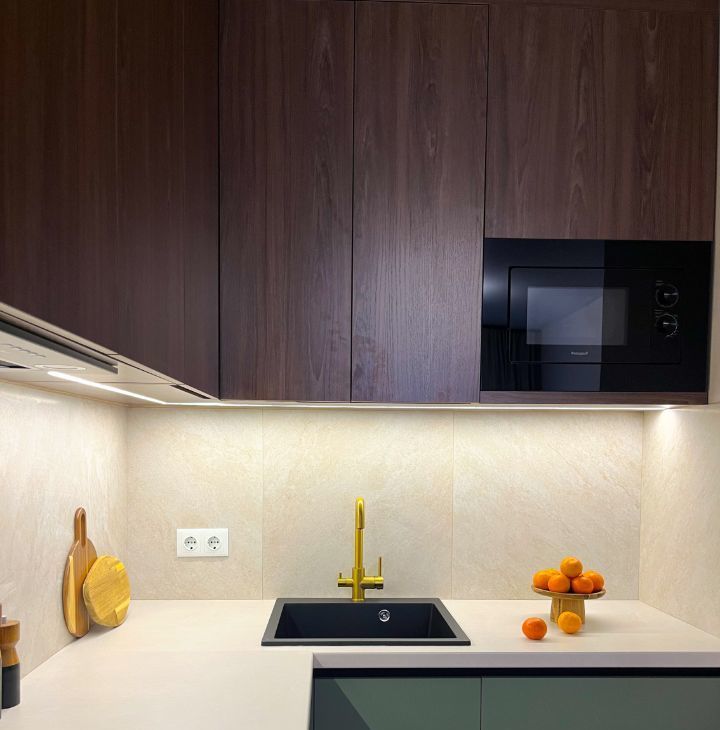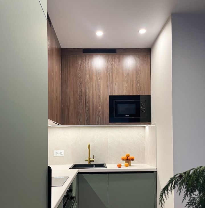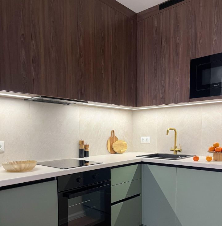 — встроенный холодильник, духовой шкаф, варочная панель,