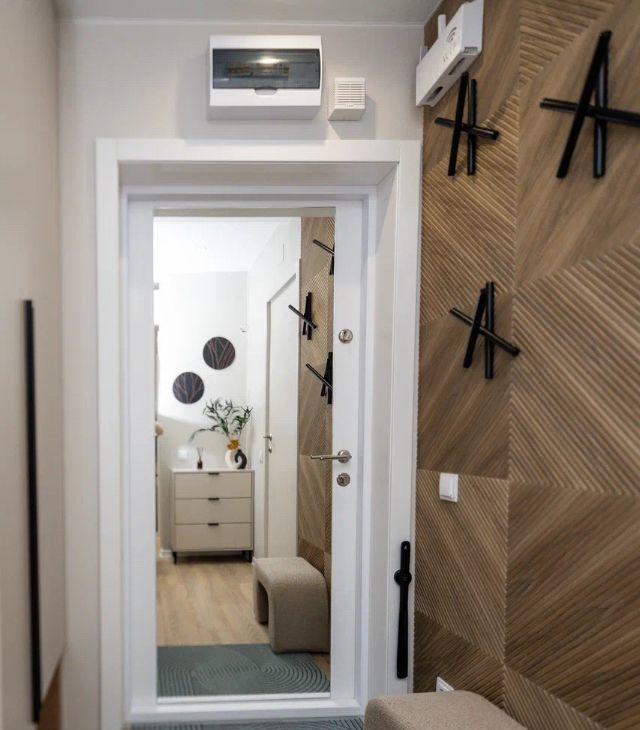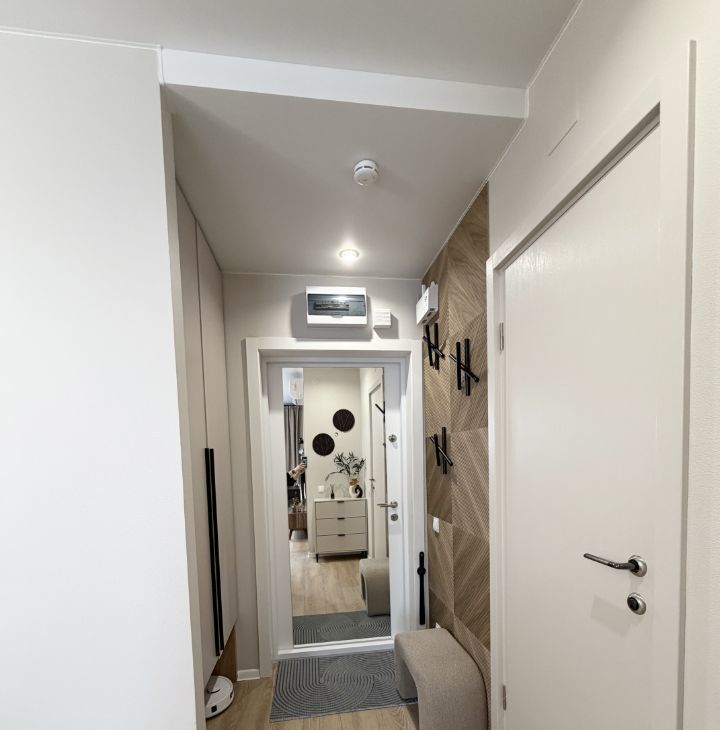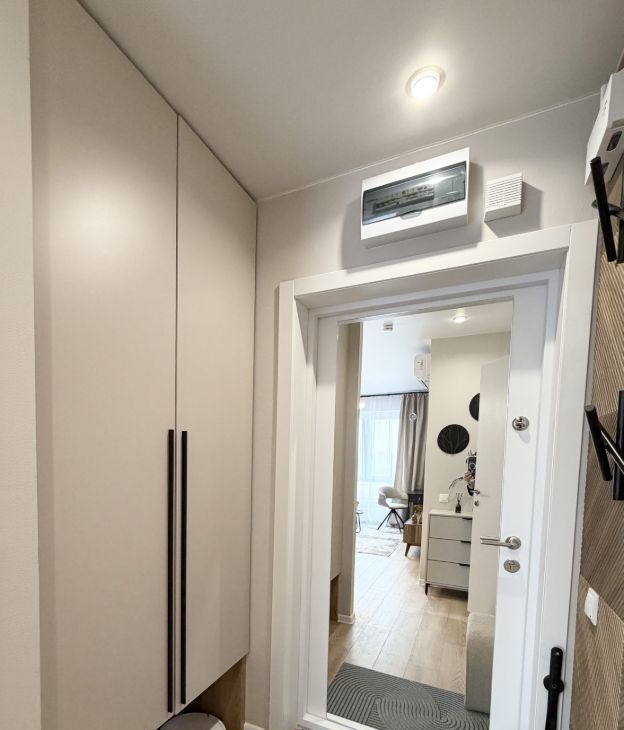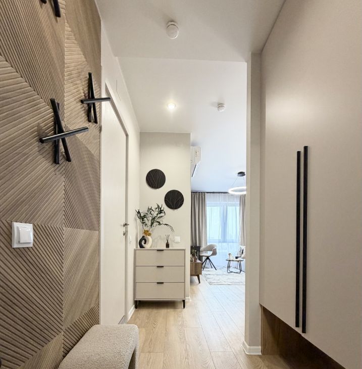 Прихожая: встроенный шкаф, комод, пуфик, робот-пылесос. Балкона нет. Метал двер с зеркалом. Закрытый тамбур. 1 пасс и 1 груз скоростные лифты. Современный подъезд с видеонаблюдением. Выход из подъезда на 2 стороны. Приличные соседи. Подземный паркинг на -2 этажа. Также возможность удобной парковки рядом с домом. Огороженная и охраняемая внутренняя территория. Двор без машин. Во дворе благоустроенная территория с детскими, спорт площадками и зонами отдыха.