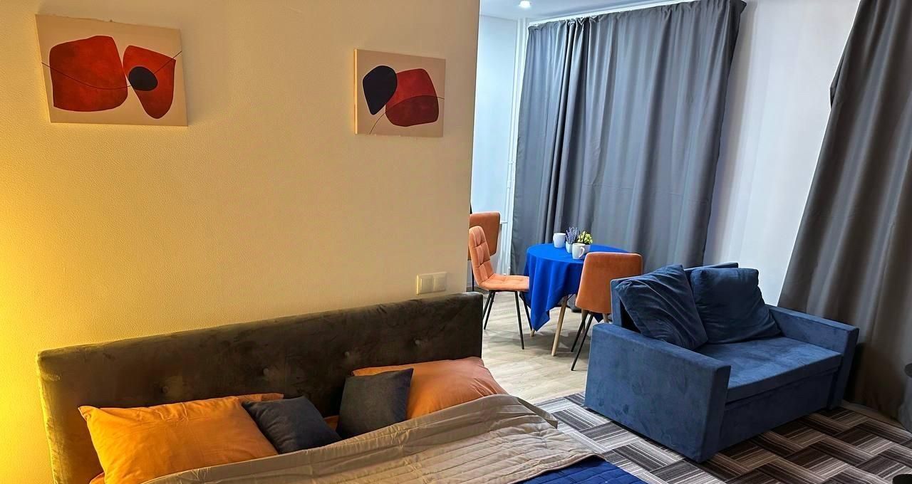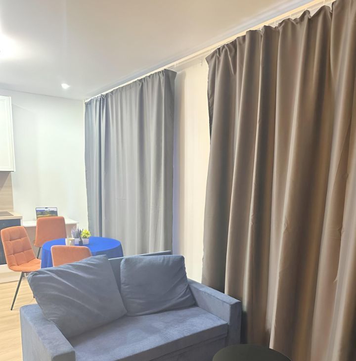 Квартира оборудована просторной двуспальной кроватью с подъемным механизмом (160200), диваном, телевизором, всей необходимой кухонной мебелью. при желании можно создать очень уютное рабочее место у окна.
