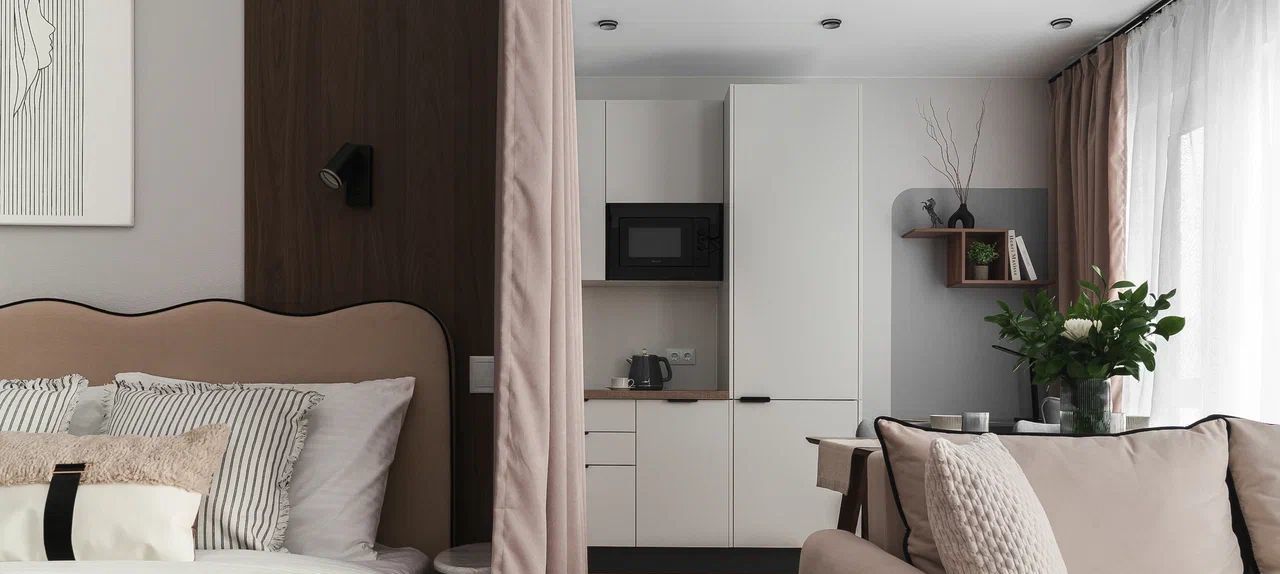 Вашему вниманию предлагается большая очень светлая студия 33 кв.м с гардеробной комнатой.
