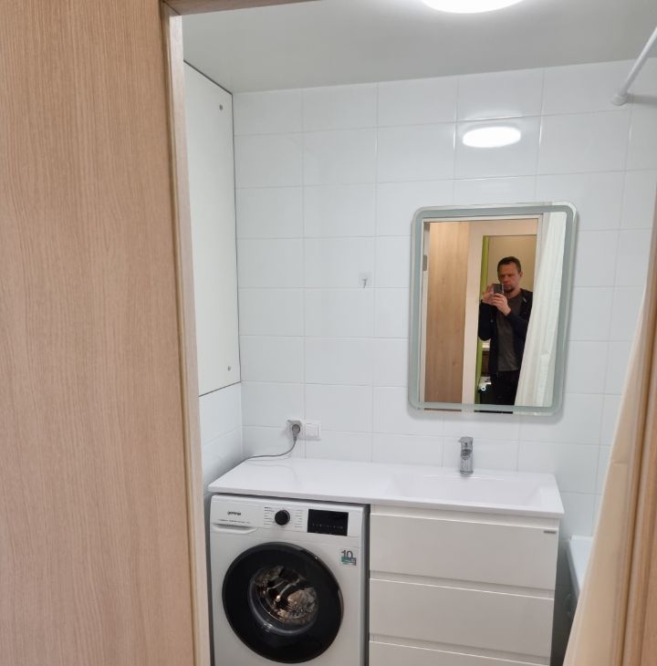 Из техники в квартире есть: стиральная машина, варочная индукционная плита, духовой шкаф, посудомоечная машина, микроволновая печь, холодильник, измельчитель бытовых отходов.