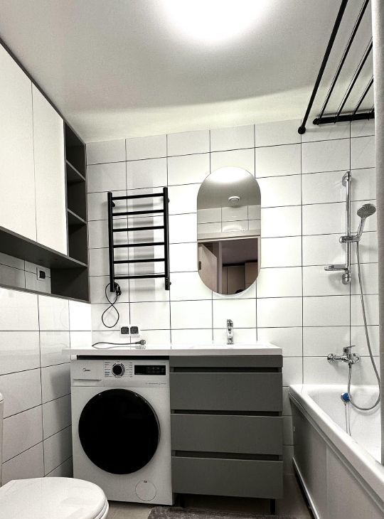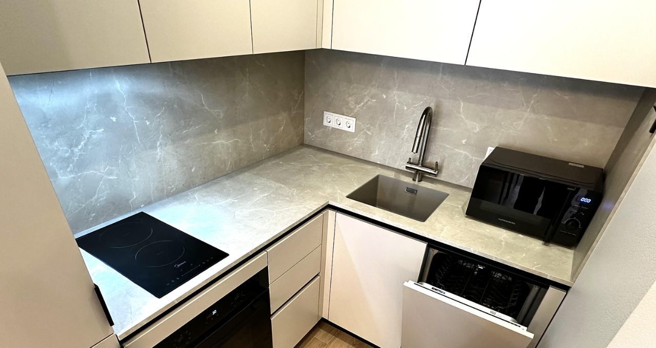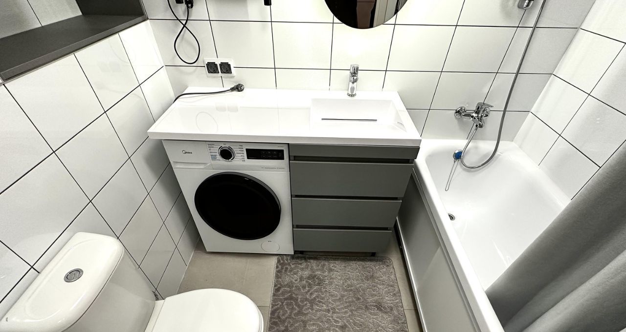 В квартире сделан современный евроремонт. Она полностью оборудована всем необходимым для комфортного проживания: холодильник, посудомоечная и стиральная машины, телевизор. К сезону готовы установить кондиционер. На кухне и в комнате установлена мебель, поэтому вы сможете сразу въехать и жить без хлопот. Ванная комната оснащена ванной, что позволит вам расслабляться после трудового дня.