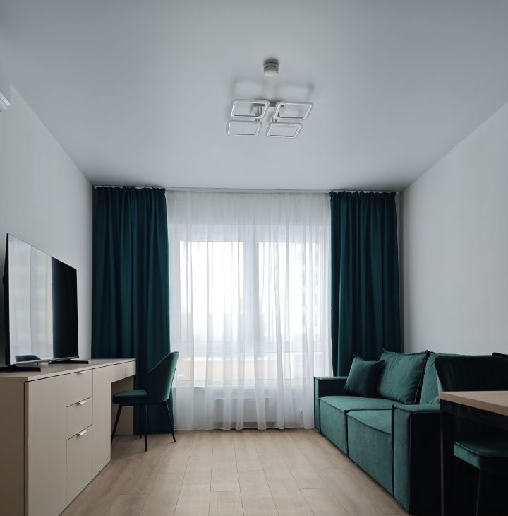 Квартира расположена в новом районе с развитой инфраструктурой, рядом есть ТЦ, различные магазины, кафе, салоны красоты. Курение запрещено, можно проживание с детьми, но без животных.