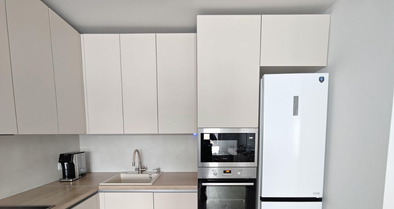 Кухня-гостиная оборудована современной техникой: холодильник, духовой шкаф, микроволновая печь, посудомоечная машина, фильтр для воды, термопот, телевизор(на фото нет, но он будет), кондиционер.