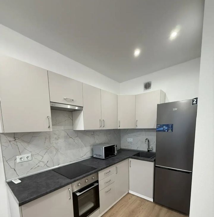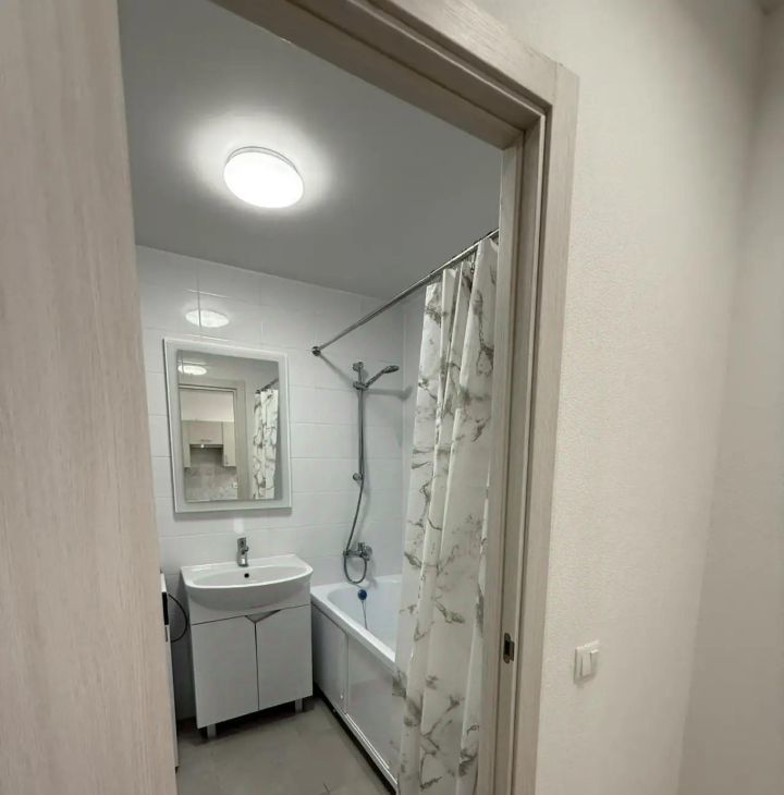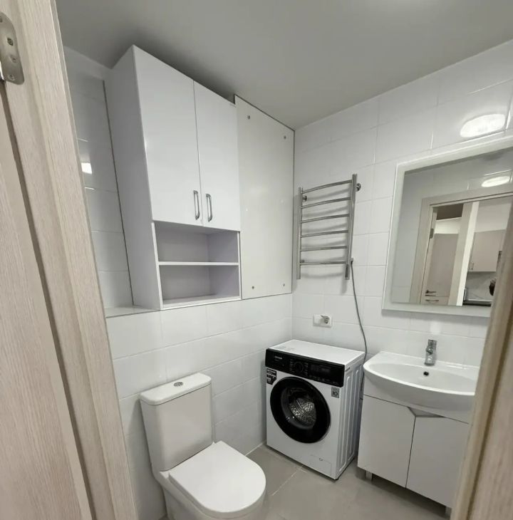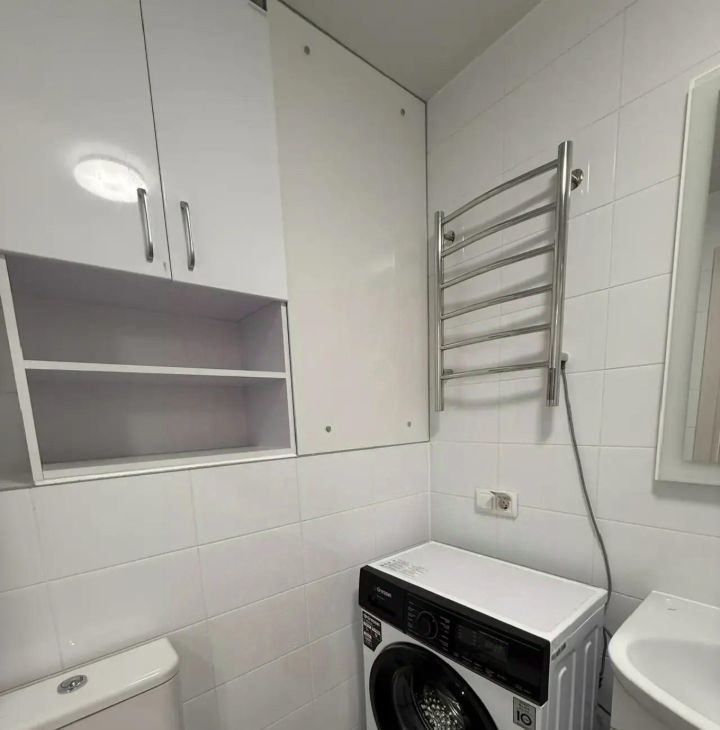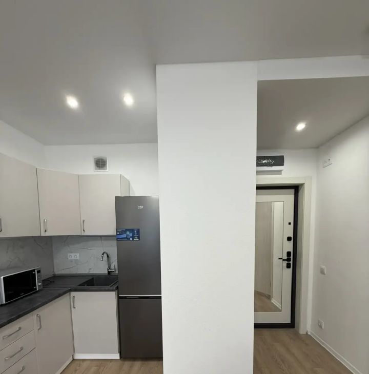 В квартире есть всё необходимое для комфортного проживания: кондиционер, холодильник, посудомоечная и стиральная машины, телевизор. Кухня оборудована современной мебелью и техникой. В комнате также есть мебель, которая позволяет сразу заехать и жить без лишних хлопот. Санузел совмещённый. Окна выходят во двор, поэтому в квартире тихо и спокойно.