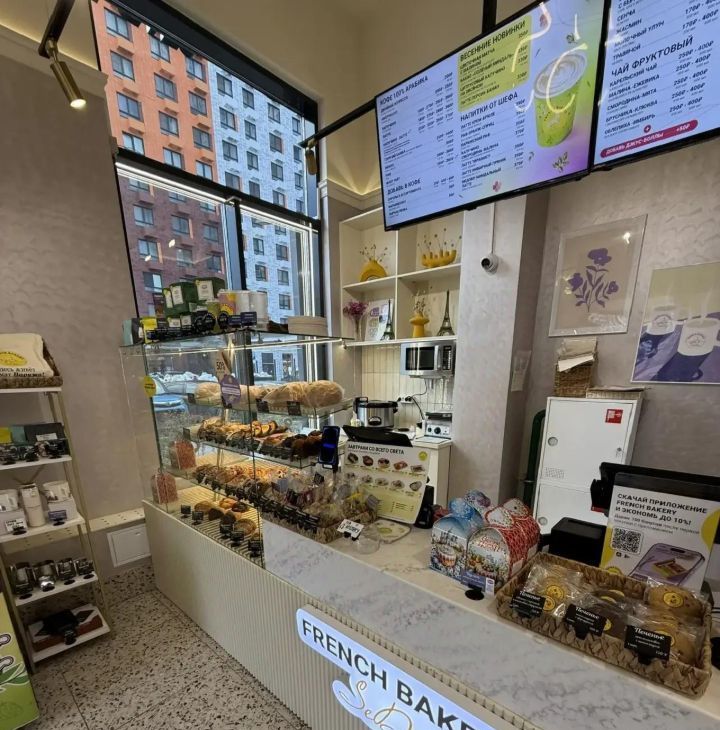 В доме есть хорошая кофейня с вкусной выпечкой.