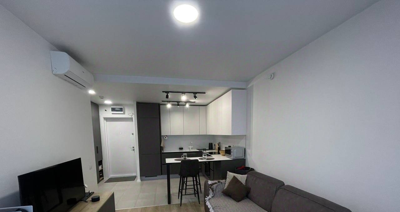 Продается удобная евро-двушка: совмещенная кухня-гостиная, спальня, совмещенный санузел, прихожая.